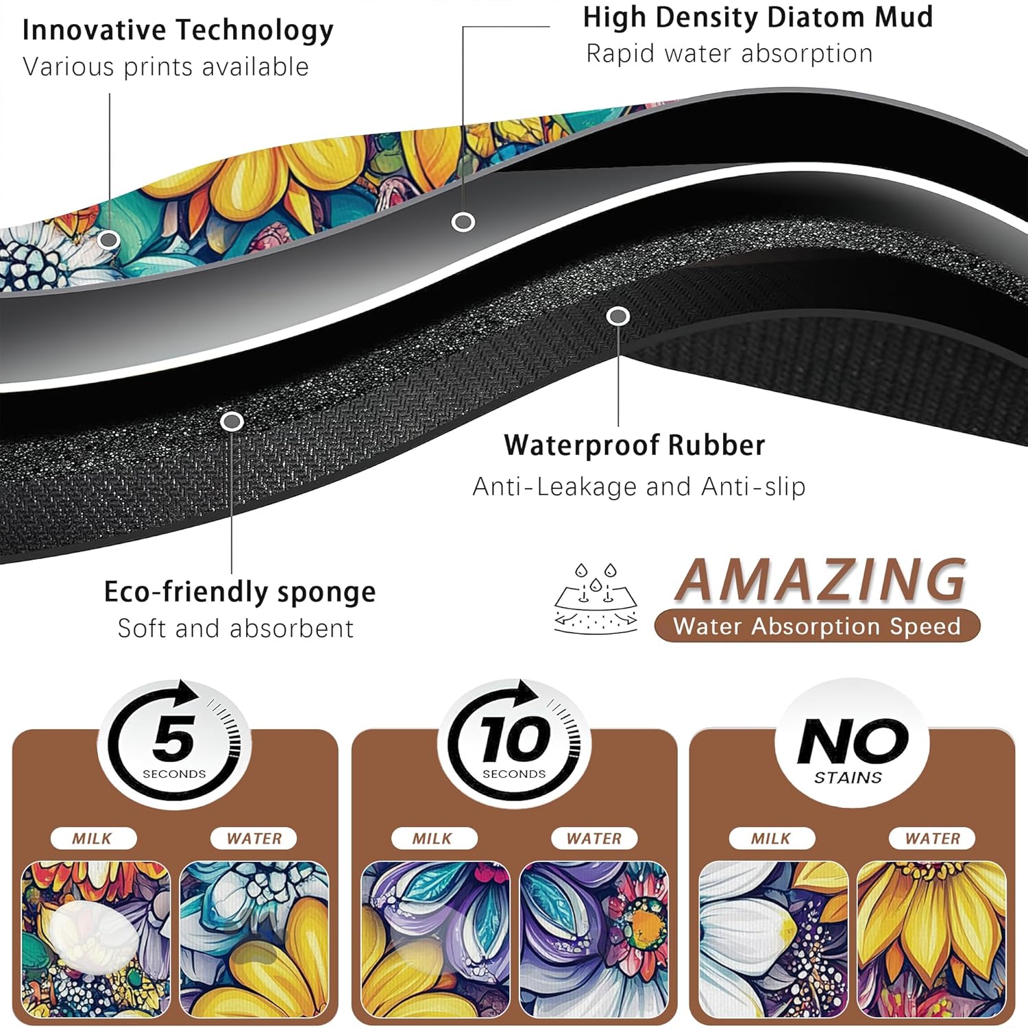 Floral Dog Food Mat for Floors,Cute Mandala Flower Absorbent Quick-Dry Pet Feeding Mat,Cat Dog Bowl Mats for Food and Water,Non-Slip Pet Accessories Supplies 16"x24"