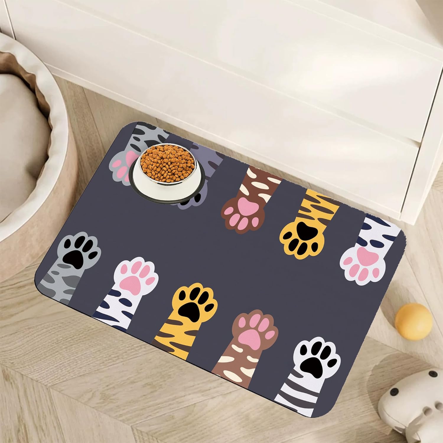 Cute Cat Paw Print Dog Food Mat for Floors,Absorbent Pet Food and Water Bowl Mats,Non-Slip Pet Feeding Mat,Pet Supplies 16" x 24"