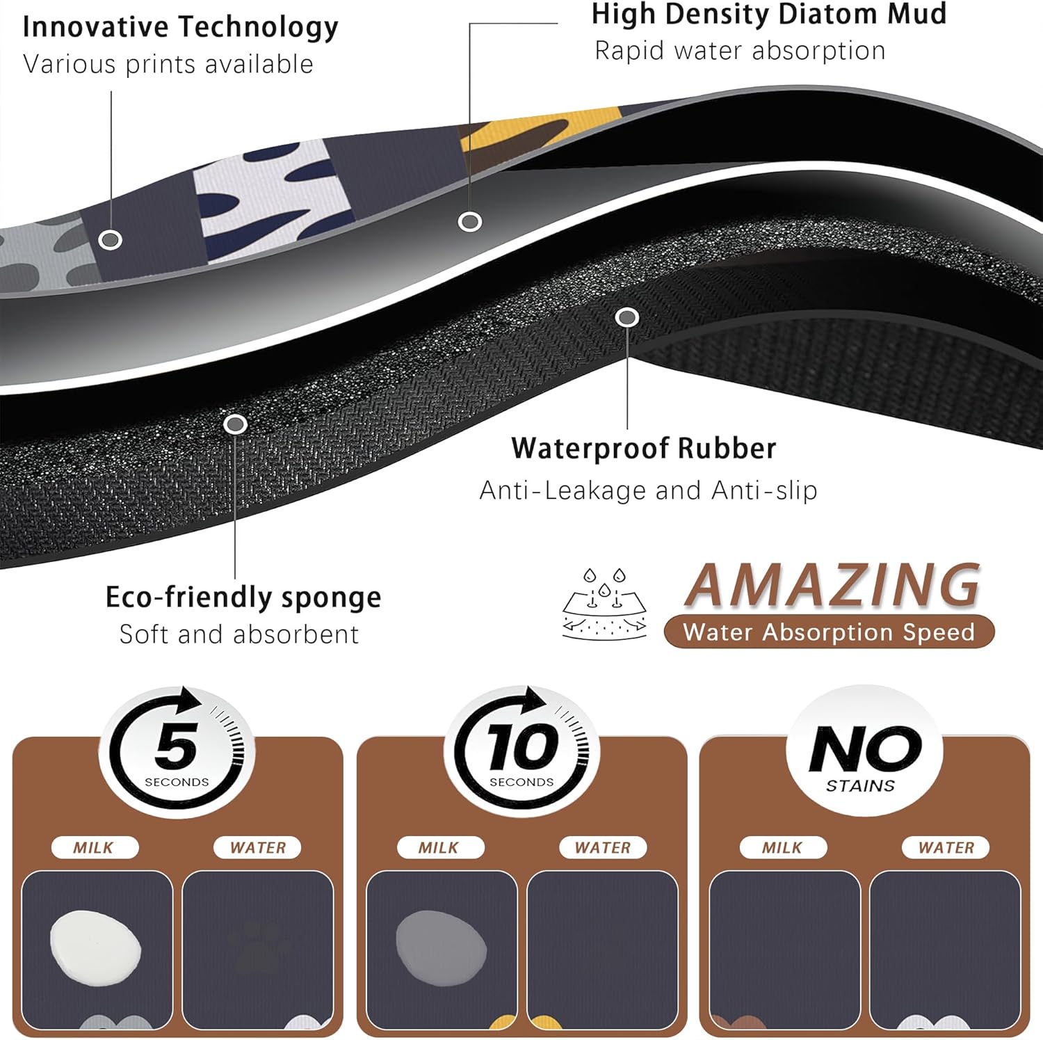 - Non-Slip Design: The rubber bottom holds the mat firmly in place, no matter how much your pet moves. The waterproof layer protects the floor from moisture and helps minimize wear and tear, creating a clean and comfortable feeding area. It also provides a safe and comfortable eating space for your pet.