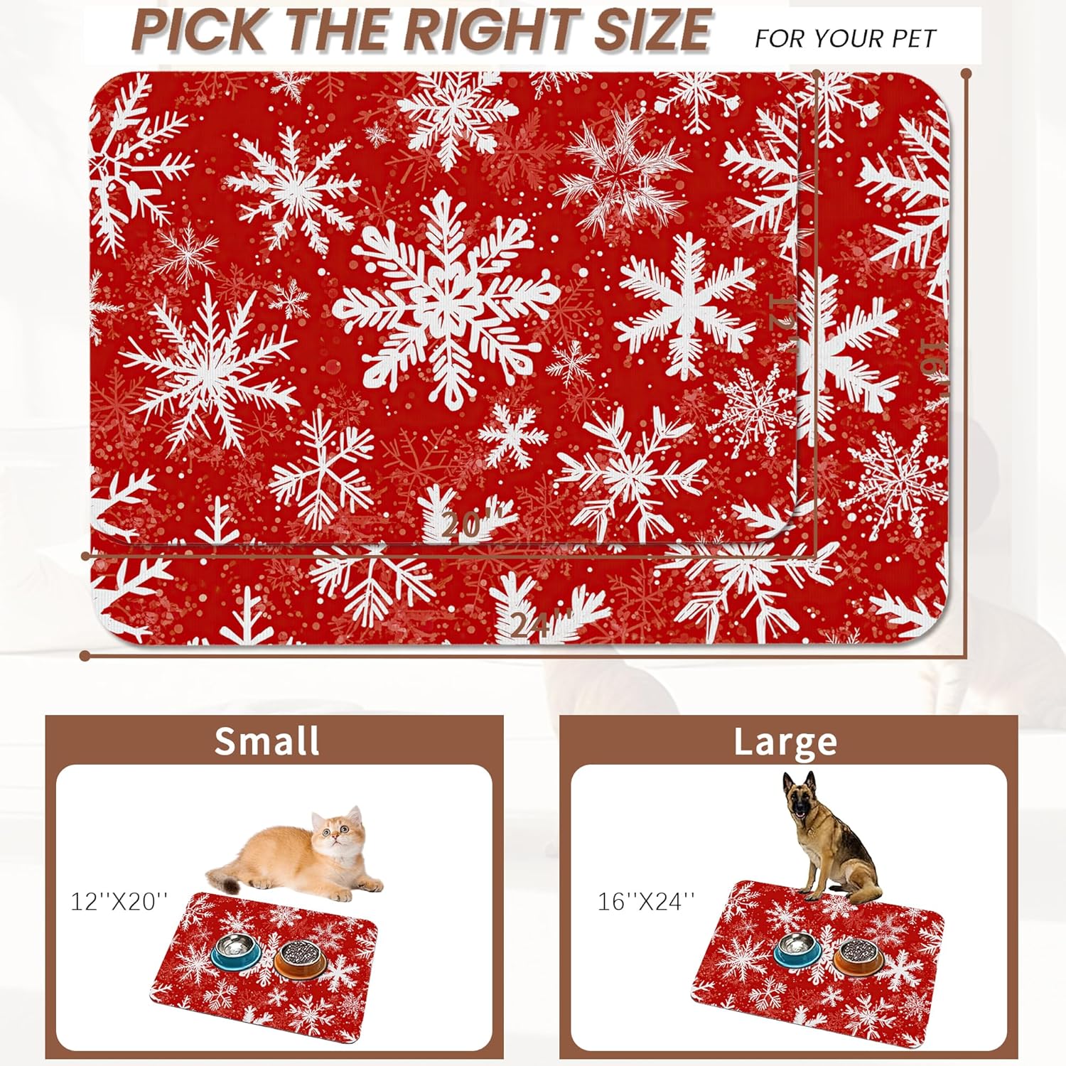 Christmas Dog Food Mat for Floors,Snowflake Absorbent Pet Food and Water Bowl Mats,Non-Slip Pet Feeding Mat,Pet Supplies 12" x 20"