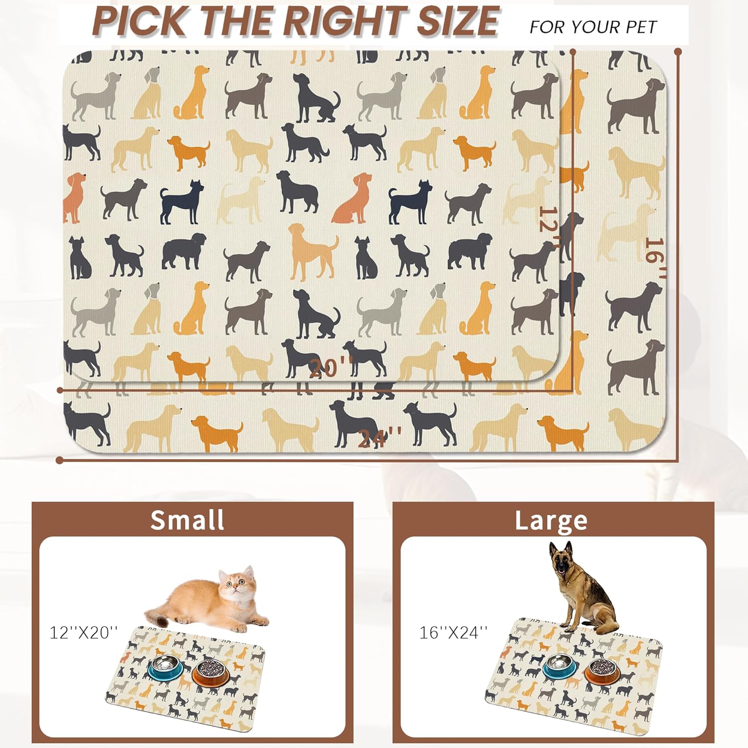Cute Dog Cat Food Mat,Color Silhouette Absorbent Pet Feeding Mat with Rubber Backing,Non-Slip Water Bowl Placemat,Indoor Pet Accessories Supplies 16"x24"
