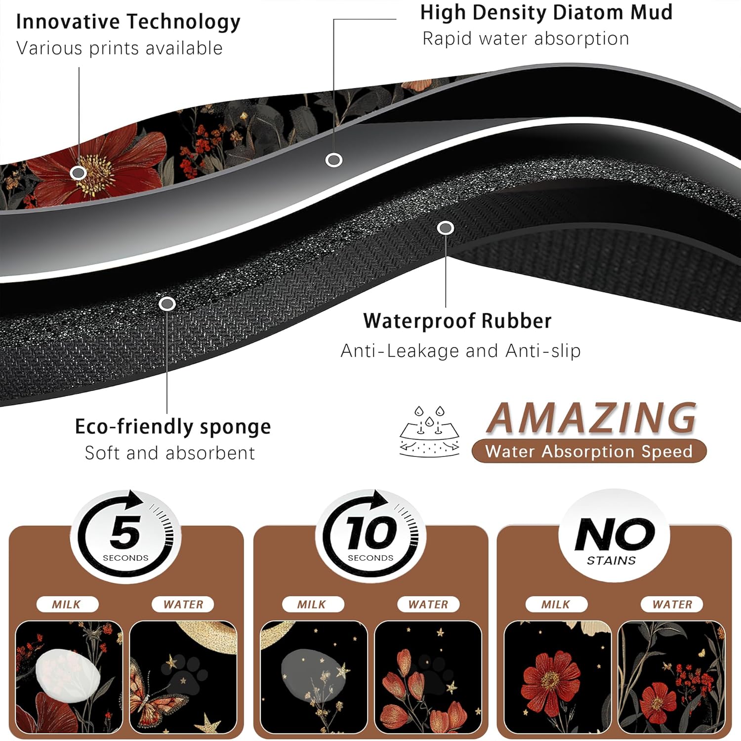 Moon Butterfly Pet Feeding Mat,Vintage Garden Luxury Absorbent Quick-Dry Cat Dog Food and Water Bowl Mats,Non-Slip Rubber Backing Mat,Cat Dog Accessories Supplies 16"x24"