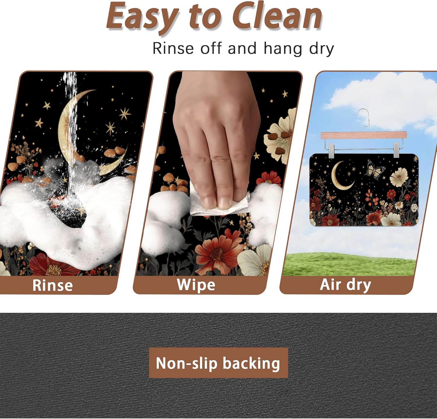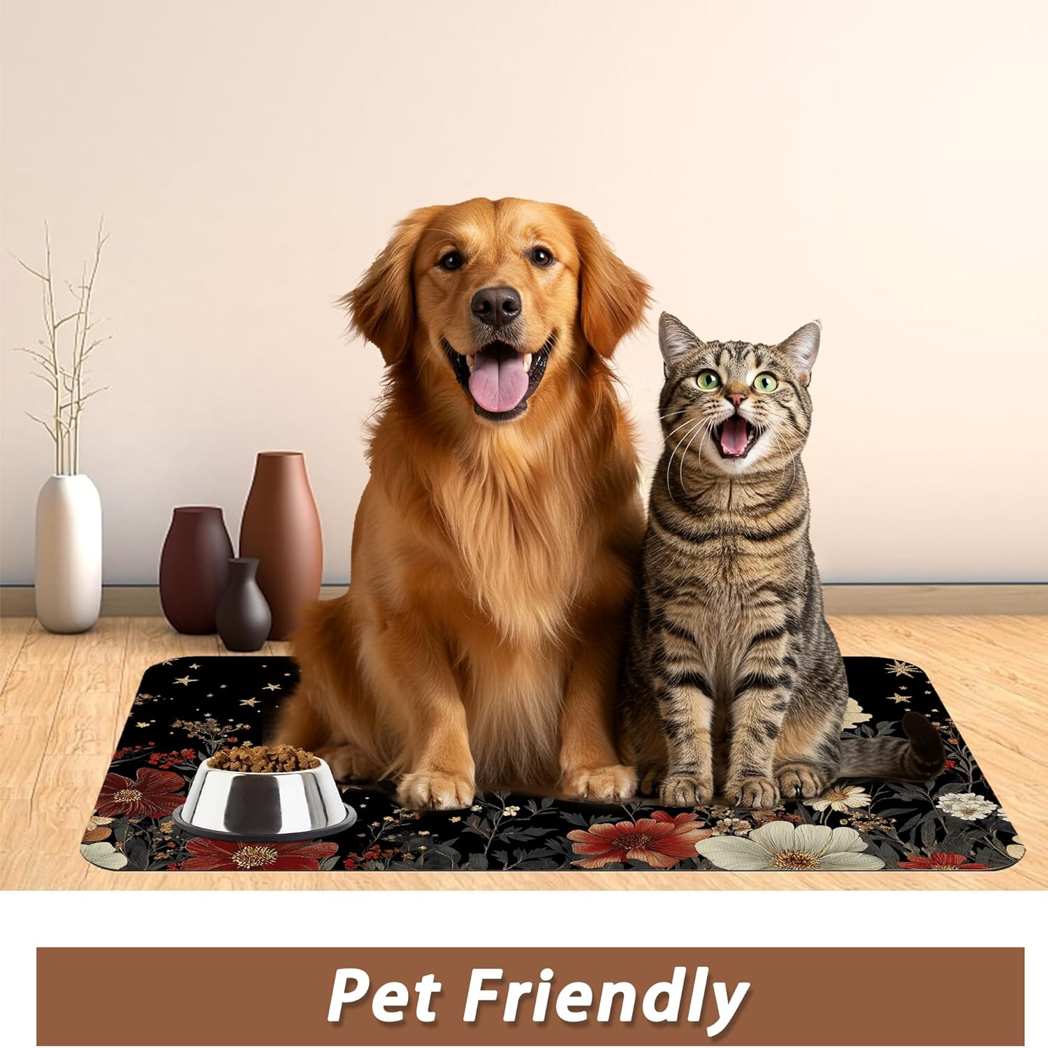 - Absorbent: This Moon Butterfly Vintage Garden Luxury pattern pet food mat helps prevent liquid spills and keeps your pet's eating area clean, making it a practical addition to your pet supplies. It helps keep paws dry even for pets who love to drink water. The sturdy design is resistant to tearing and helps prevent accidental ingestion.