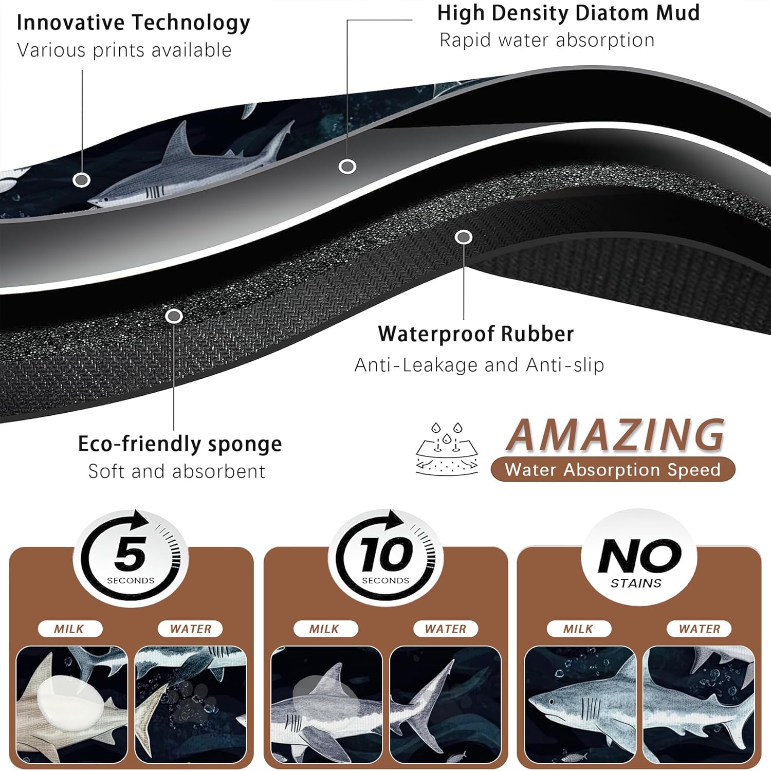 Cute Shark Dog Cat Food Mat,Absorbent Pet Feeding Mat with Rubber Backing,Non-Slip Water Bowl Placemat,Indoor Pet Accessories Supplies 16"x24"