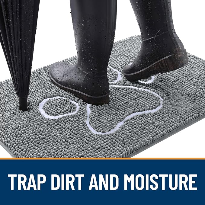 - [ABSORBS MOISTURE AND DIRT] OLANLY indoor dog mat for muddy paws is crafted to efficiently remove dirt and swiftly absorb moisture. With our doormat, your shoes will be instantly clear of any water, dust, grit, muck, sand, sleet, grass, slush, rain, or snow upon entering the house. It's an excellent choice for use as an entryway door mat, a welcoming door mat, or a dirt-trapping mat.