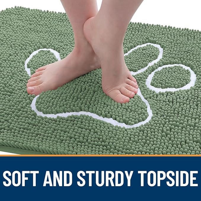 OLANLY Door Mat for Muddy Dog Paws 48x30, Absorbent Chenille Doormat with Paw Print Design, Non-Slip Washable Doormat for Indoor Entryway, Quick-Dry Pet Bed Mats for Dirty Dogs, Olive Green and White