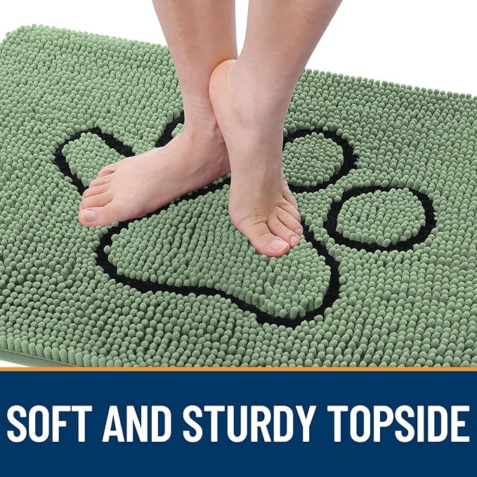 OLANLY Door Mat for Muddy Dog Paws 30x20, Absorbent Chenille Doormat with Paw Print Design, Non-Slip Washable Doormat for Indoor Entryway, Quick-Dry Pet Bed Mats for Dirty Dogs, Olive Green and Black