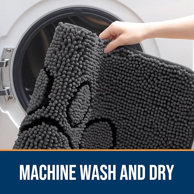 OLANLY Door Mat for Muddy Dog Paws 48x30, Absorbent Chenille Doormat with Paw Print Design, Non-Slip Washable Doormat for Indoor Entryway, Quick-Dry Pet Bed Mats for Dirty Dogs, Dark Grey and Black