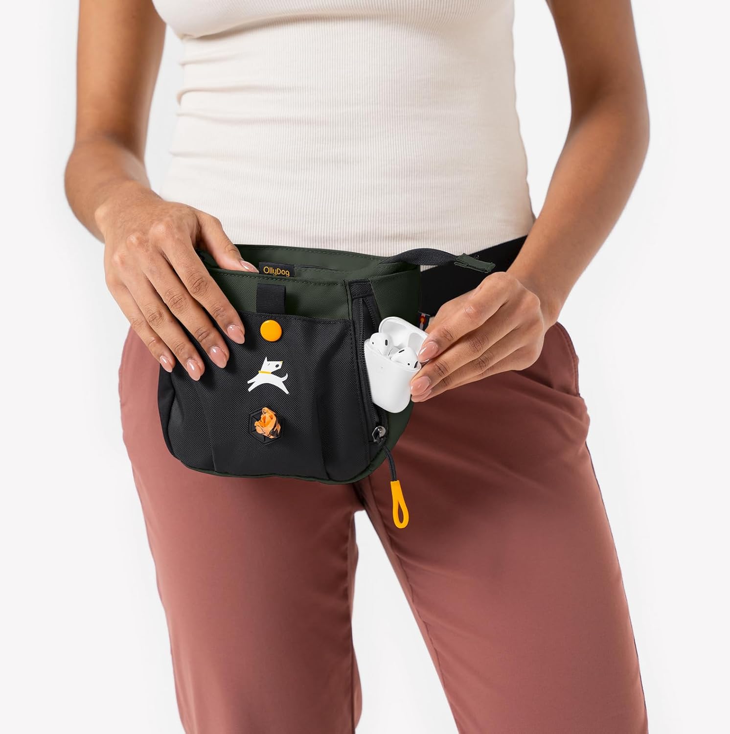 OllyDog Backcountry Day Bag | Hands-Free Dog Training Treat Pouch | Fanny/Hip Pack with Zipper Closure & Built-in Poop Bag Dispenser | Removable Waist Clip (Winter Moss)