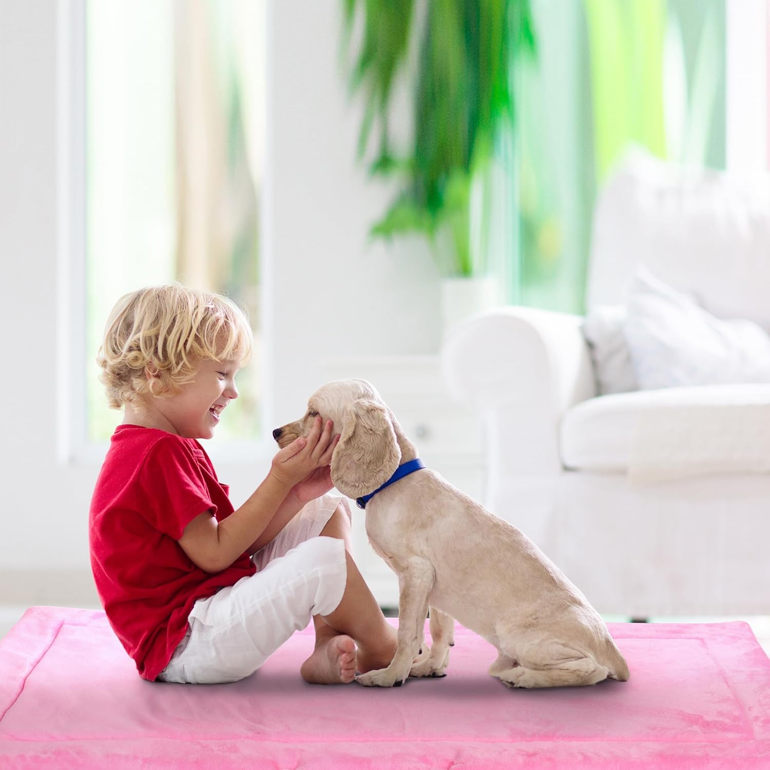 Catalonia Classic Waterproof Dog Mat, Portable Reversible Pet Travel Mat, Pet Cushion Pad with Handle for Small Medium Dogs Cats, Indoor or Outdoor, 50x27.5 inch, Pink