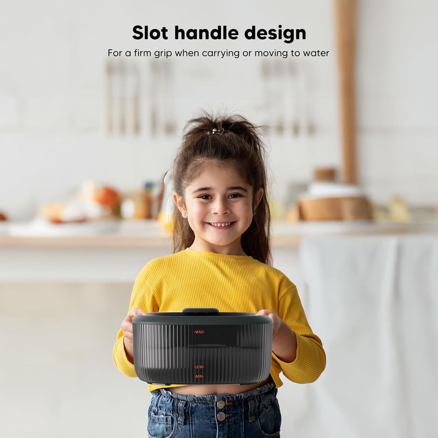 - 【User-friendly Handle Design】 Considering the weight of the dog water bowl, a handle that is easy to grip has been specially added, making it more convenient and easy for pet owners to move or carry the pet water dispenser.