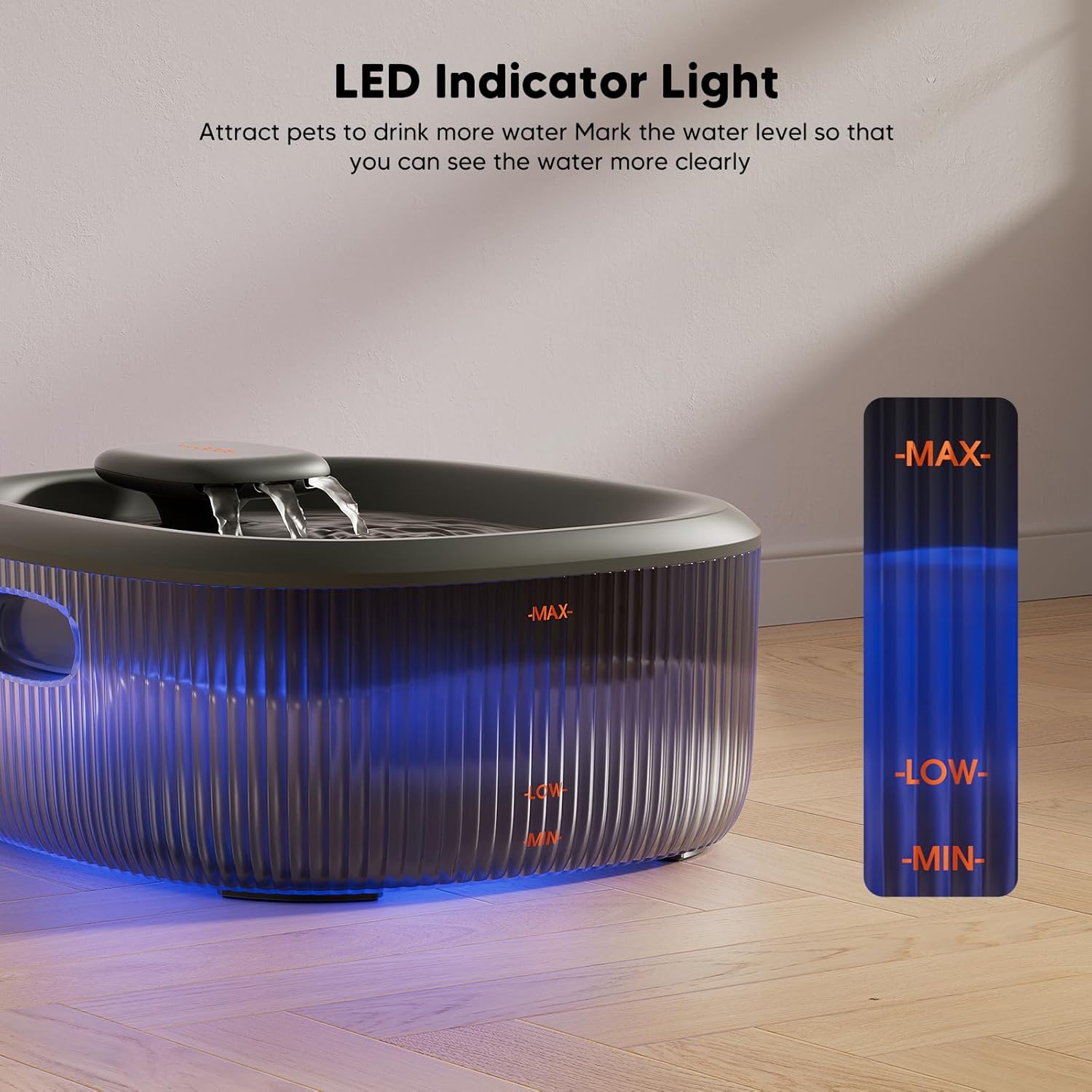 - 【Smart LED Light Reminds Water Fills】Our pet fountain comes with visible water level window, makes it easy to monitor the remaining water levels. WOPET dog water fountain with the upgraded anti-drying water pump, which features power-off protection. When the water level reaches the minimum water level line, (LED light changes from white to red when water runs out), you can refill it for your pet in time without any hassle. And, the water basin still has 16oz of water in case of emergency.