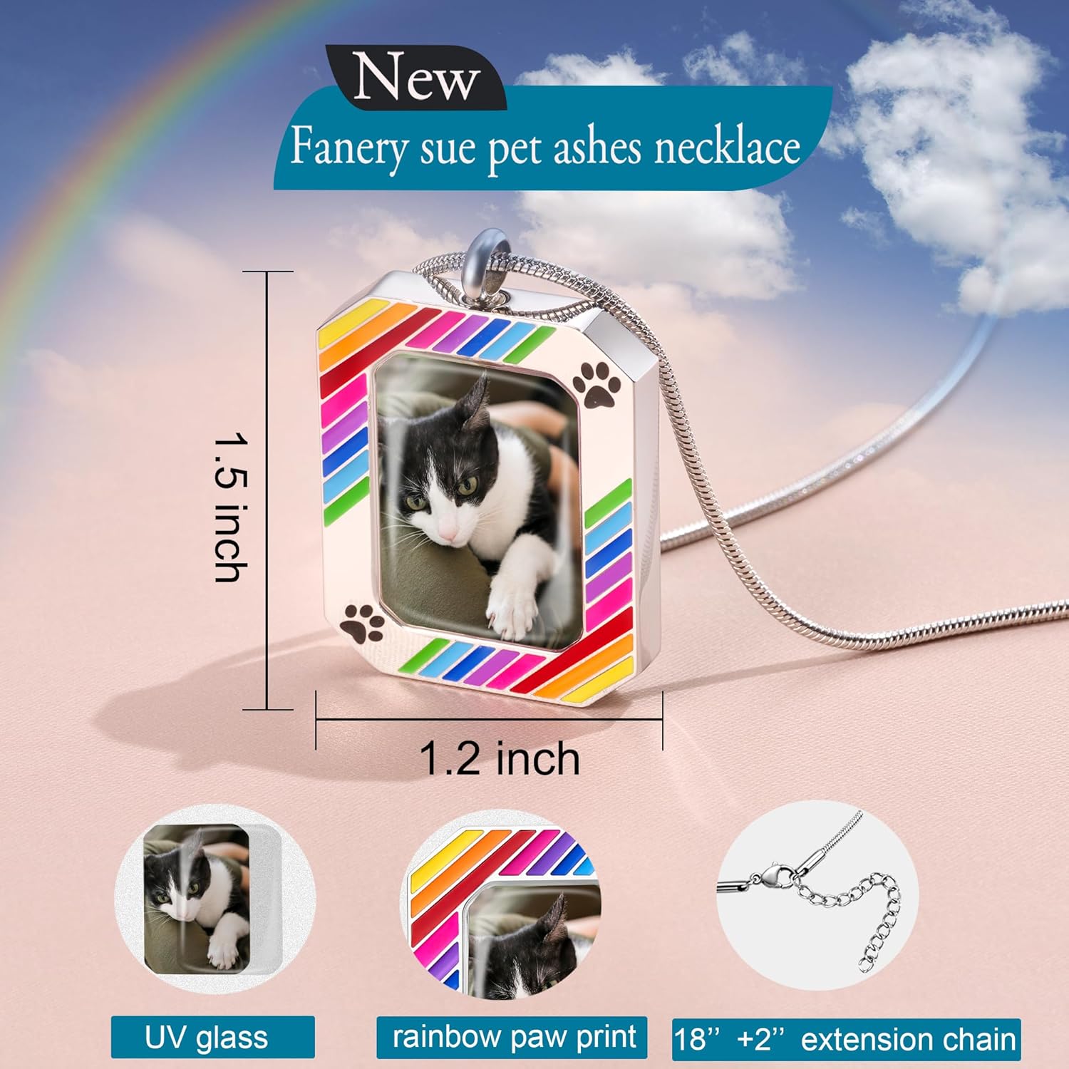 Fanery Sue Personalized Pet Ashes Necklace for Dog Cat Custom Photo&Text Pet Loss Sympathy Gift Cremation Jewelry