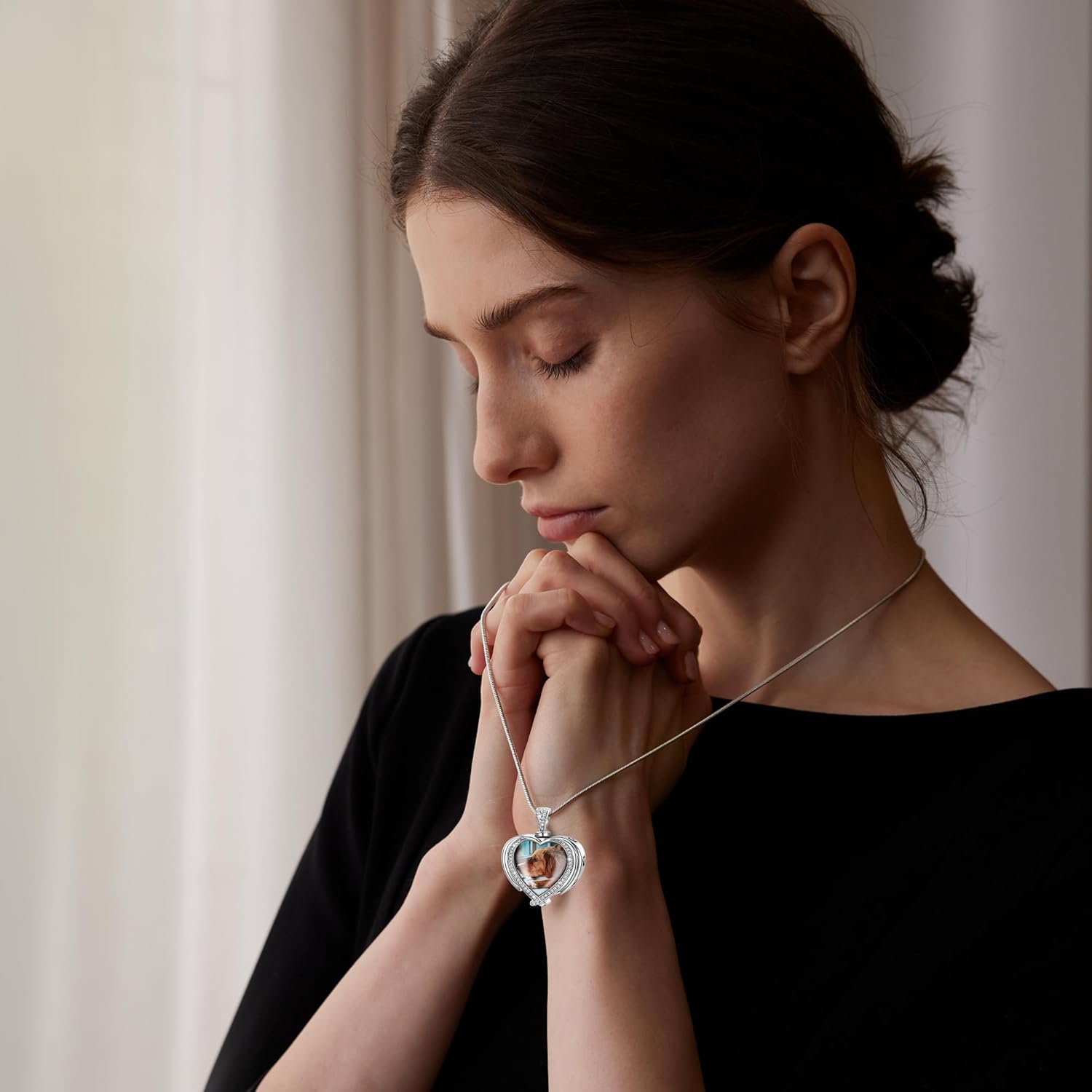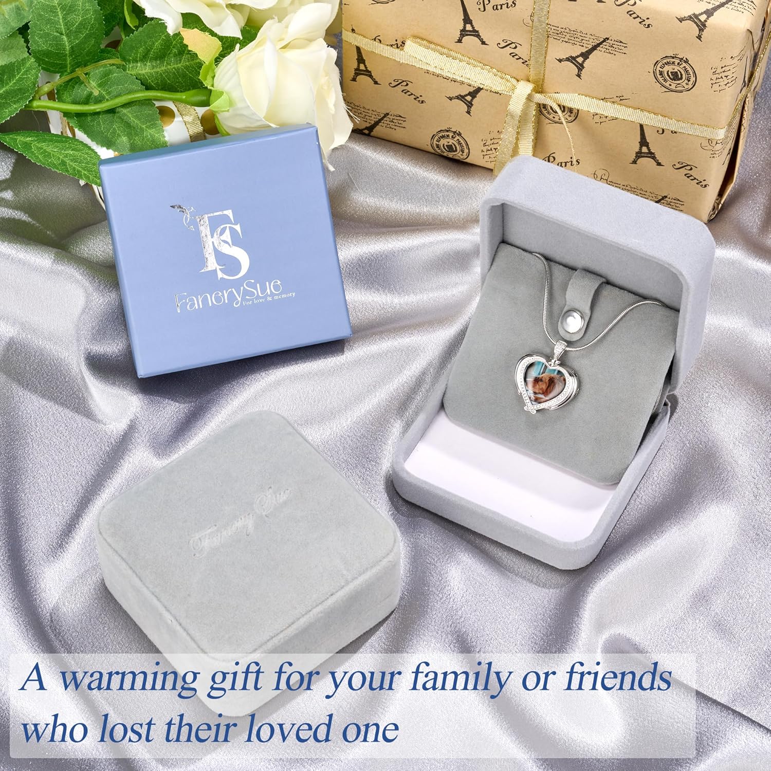 Fanery Sue Personalized Pet Ashes Necklace for Dog Cat Custom Photo&Text Pet Loss Sympathy Gift Cremation Jewelry