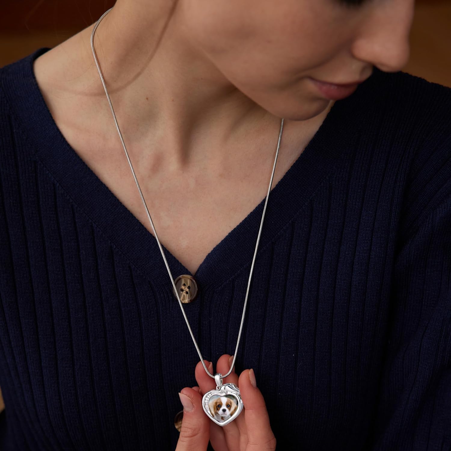 Fanery Sue Personalized Pet Ashes Necklace for Dog Cat Custom Photo&Text Pet Loss Sympathy Gift Cremation Jewelry