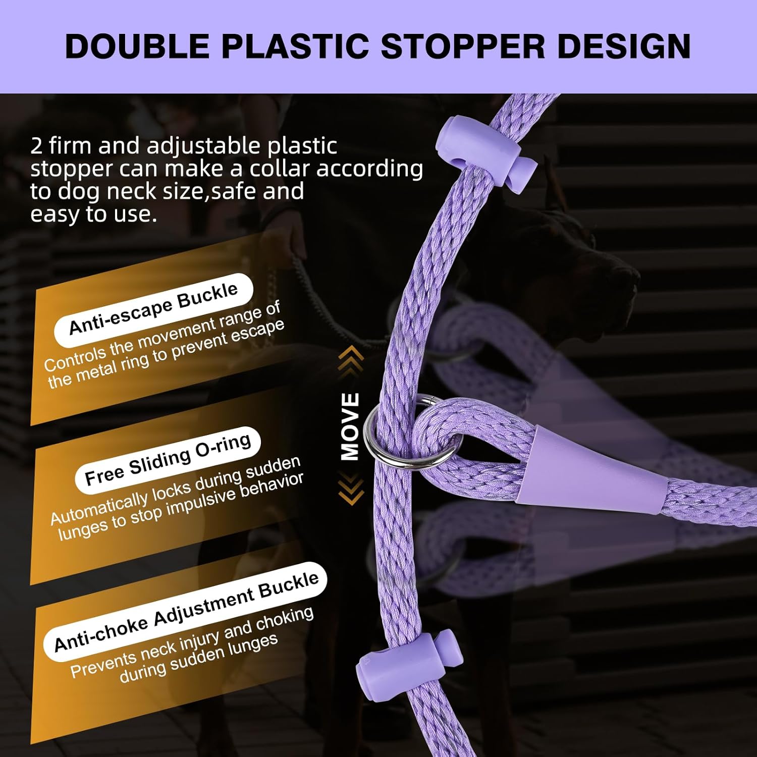 - (Strong and Lightweight) This high strength slip lead dog leash made of tough beaided thick rope,patterned padded handle,super sturdy metal ring, and the knots bound with leather cover