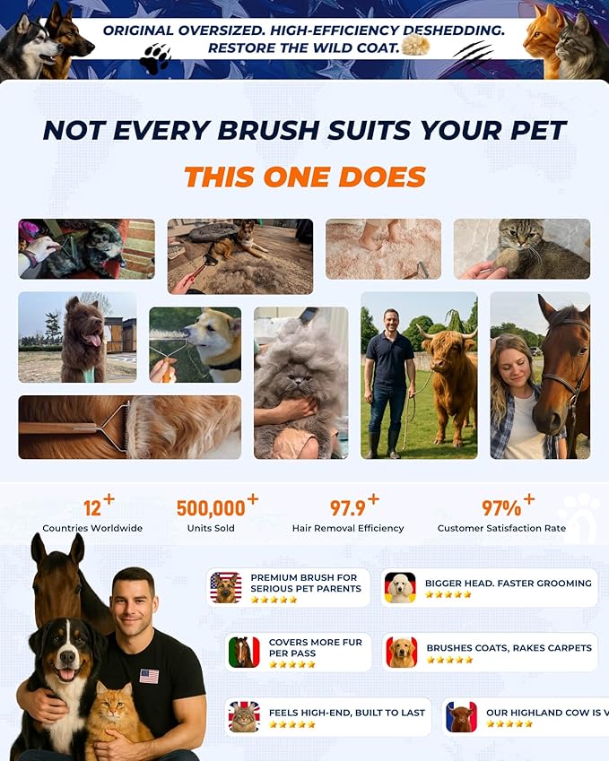 - âïžăEffortless Mat and Tangle RemovalăEasily remove stubborn mats and tangles with KIZO ESLOïž professional-grade extra larger dog brush for deshedding. Designed for both cats and dogs of medium or long coat length, like German Shepherd, Husky, Bernese Mountain Dog, this professional grooming tool ensures a smooth, pain-free grooming experience, leaving your pet's coat healthy and neat.