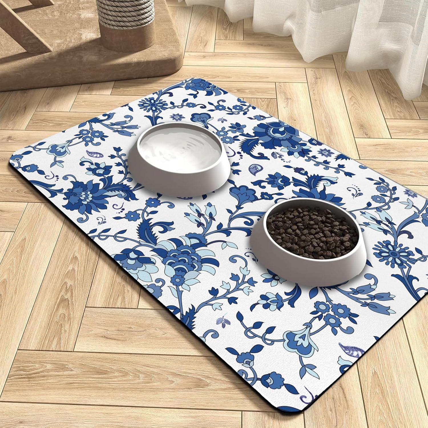 Pet Dog Food Mat Large - Absorbent Non-Slip Placemat for Dog Bowl,Cat Feding Mats for Floors,Dishmat for Food and Water,12"x20"(Vintage Flower)