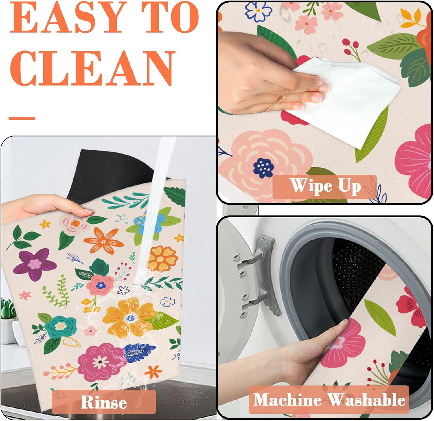 Pet Dog Food Mat Large - Absorbent Non-Slip Placemat for Dog Bowl,Cat Feding Mats for Floors,Dishmat for Food and Water,12"x20"(Colorful Flower)