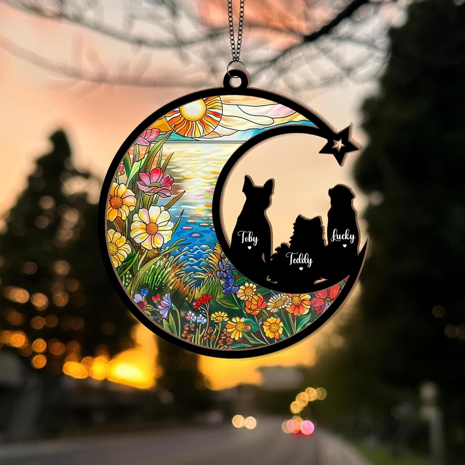 Personalized Dog Memorial Suncatcher – Custom Up to 3 Pet Names, Breeds & Background, Dog Remembrance Keepsake, Sympathy Gift for Dog Loss