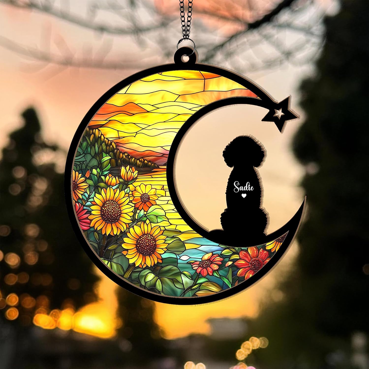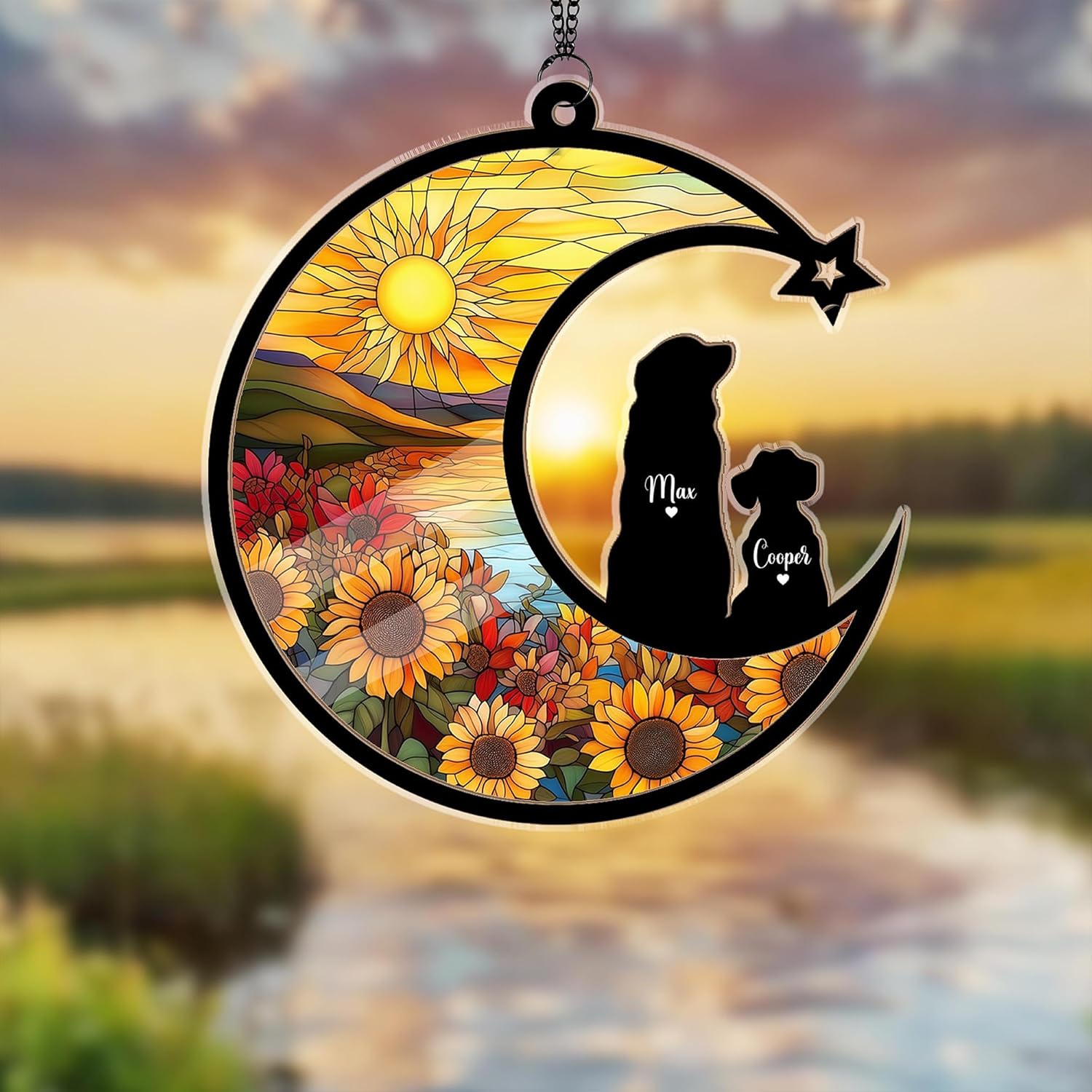 Personalized Dog Sunflower Suncatcher – Custom Dog Loss Sympathy Gift, Memorial Suncatcher for Dog Lovers, Pet Remembrance Keepsake
