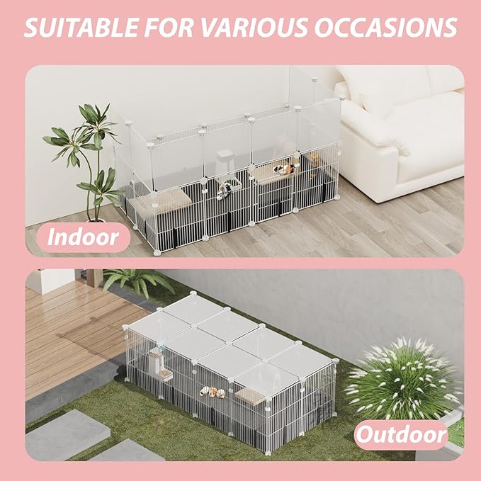 - Versatile & Expandable:Use this rabbit cage indoors or outdoors. Need more space? Simply connect multiple sets for a larger enclosure. You can also repurpose it as a storage rack—get creative with different configurations to suit your needs!