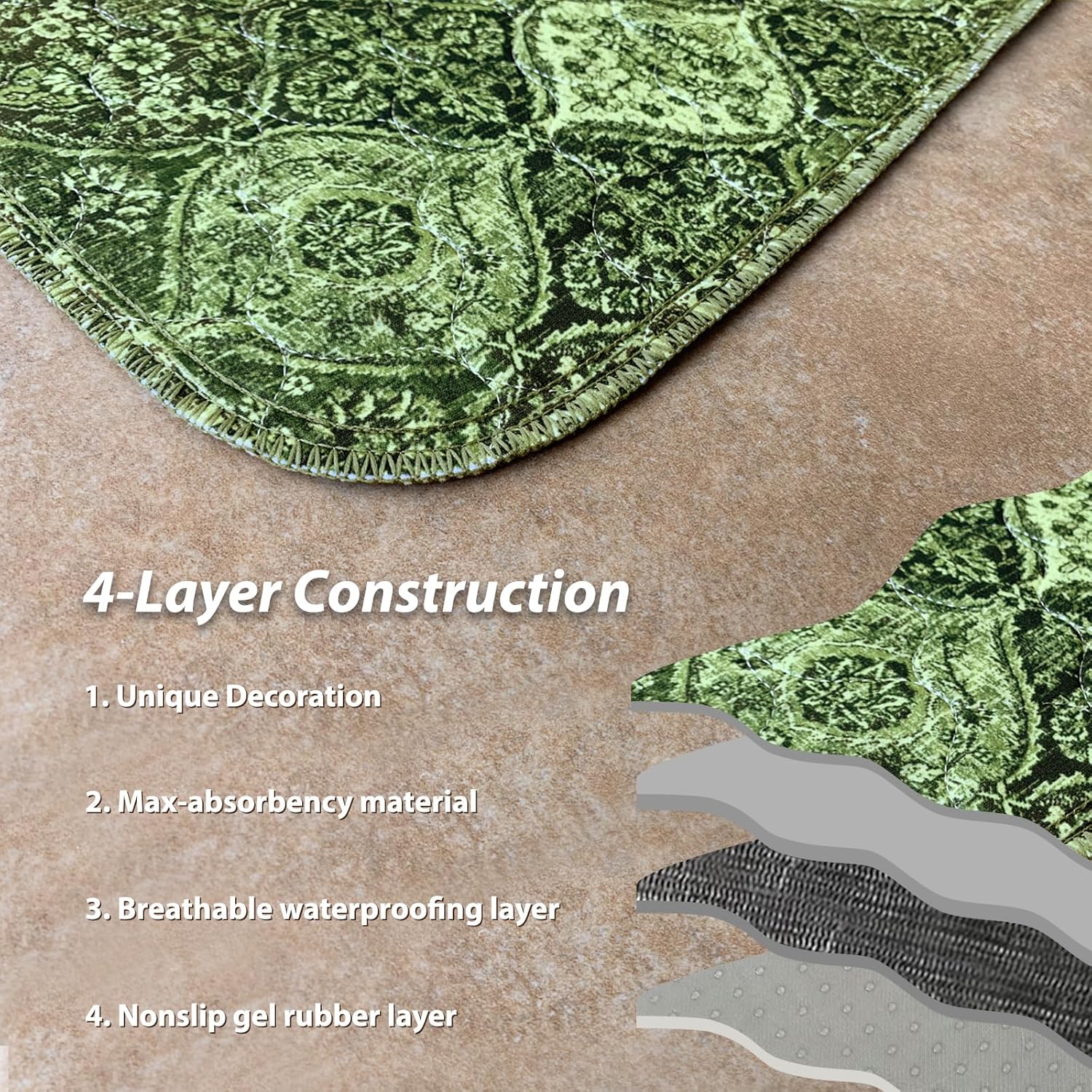 nunubaby 2PACK Washable Pee Pads for Dogs, Stylish, Non-Slip and Leak-Proof Pee Pads. Reusable Potty Pads for Dogs for Crates and Floors.(Green/Multi, 72" x72")