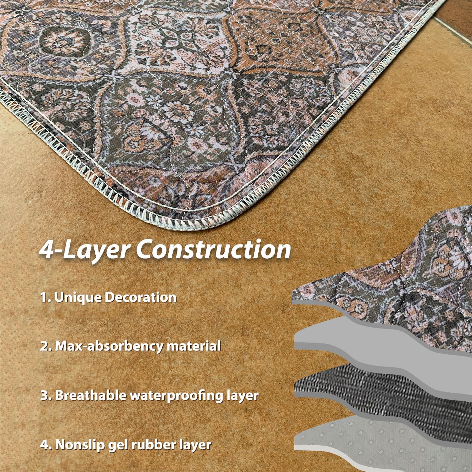 nunubaby 4PACK Washable Pee Pads for Dogs, Stylish, Non-Slip and Leak-Proof Pee Pads. Reusable Potty Pads for Dogs for Crates and Floors.(Brown/Multi, 18" x24")