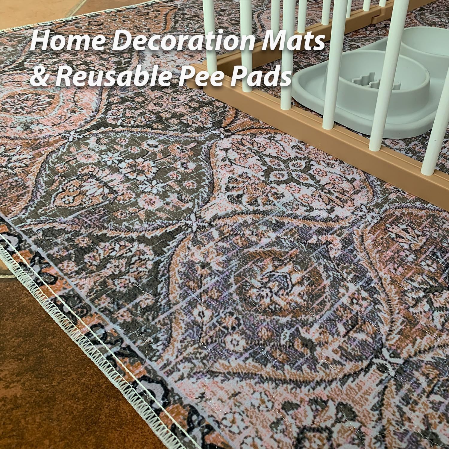 nunubaby 4PACK Washable Pee Pads for Dogs, Stylish, Non-Slip and Leak-Proof Pee Pads. Reusable Potty Pads for Dogs for Crates and Floors.(Brown/Multi, 24" x36")