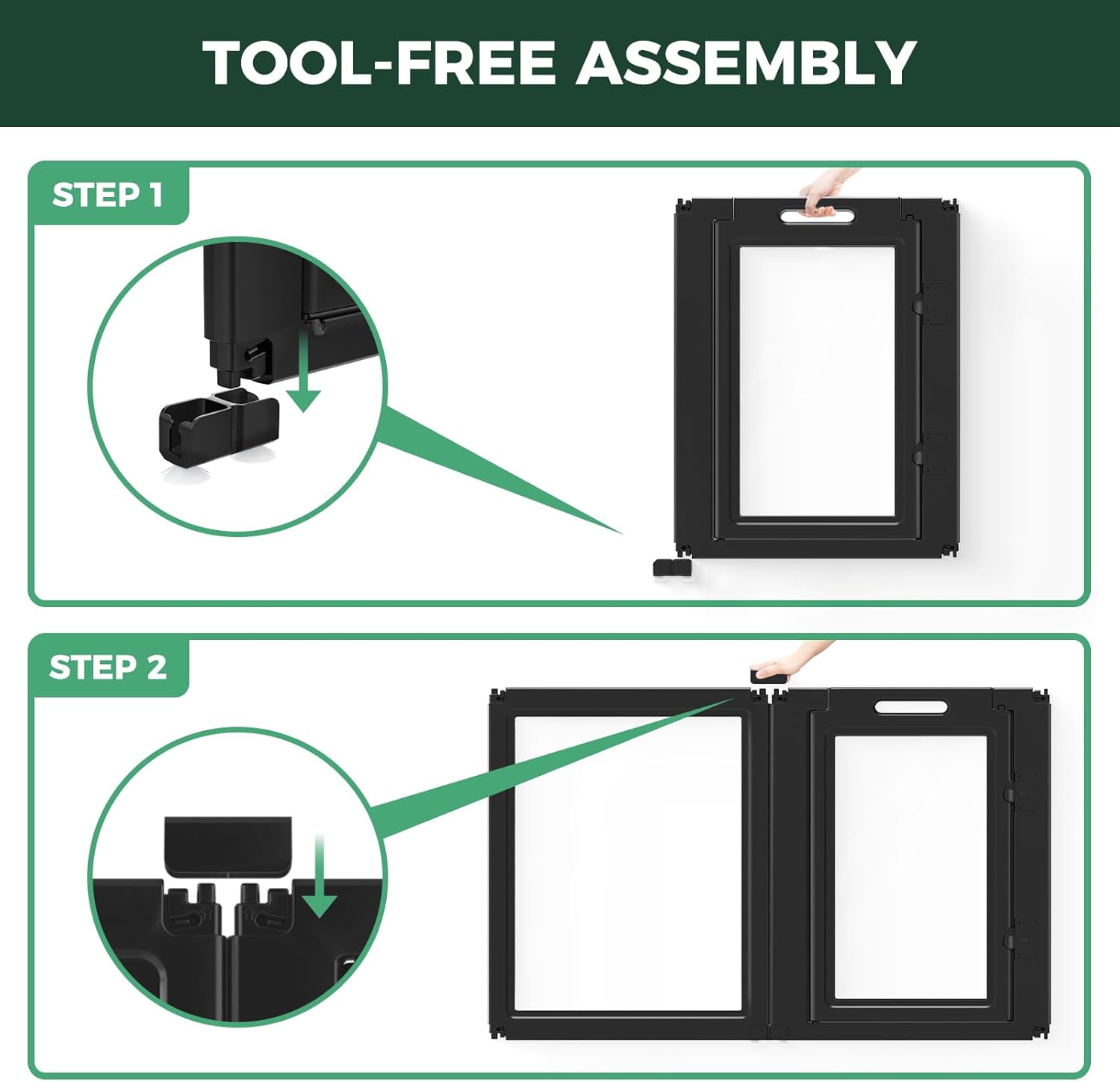 - Tool-Free, Customizable Assembly: No tools required—simply snap the panels together to create the perfect play area or barrier, with flexibility to adapt to any space.