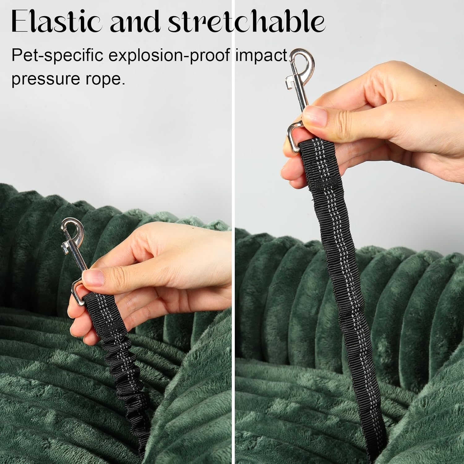 Dog Car Booster Seat, for Small Dogs Under 30 lbs, Detachable Washable Travel Bed with Storage Pockets and Safety Belt (Green, Medium)