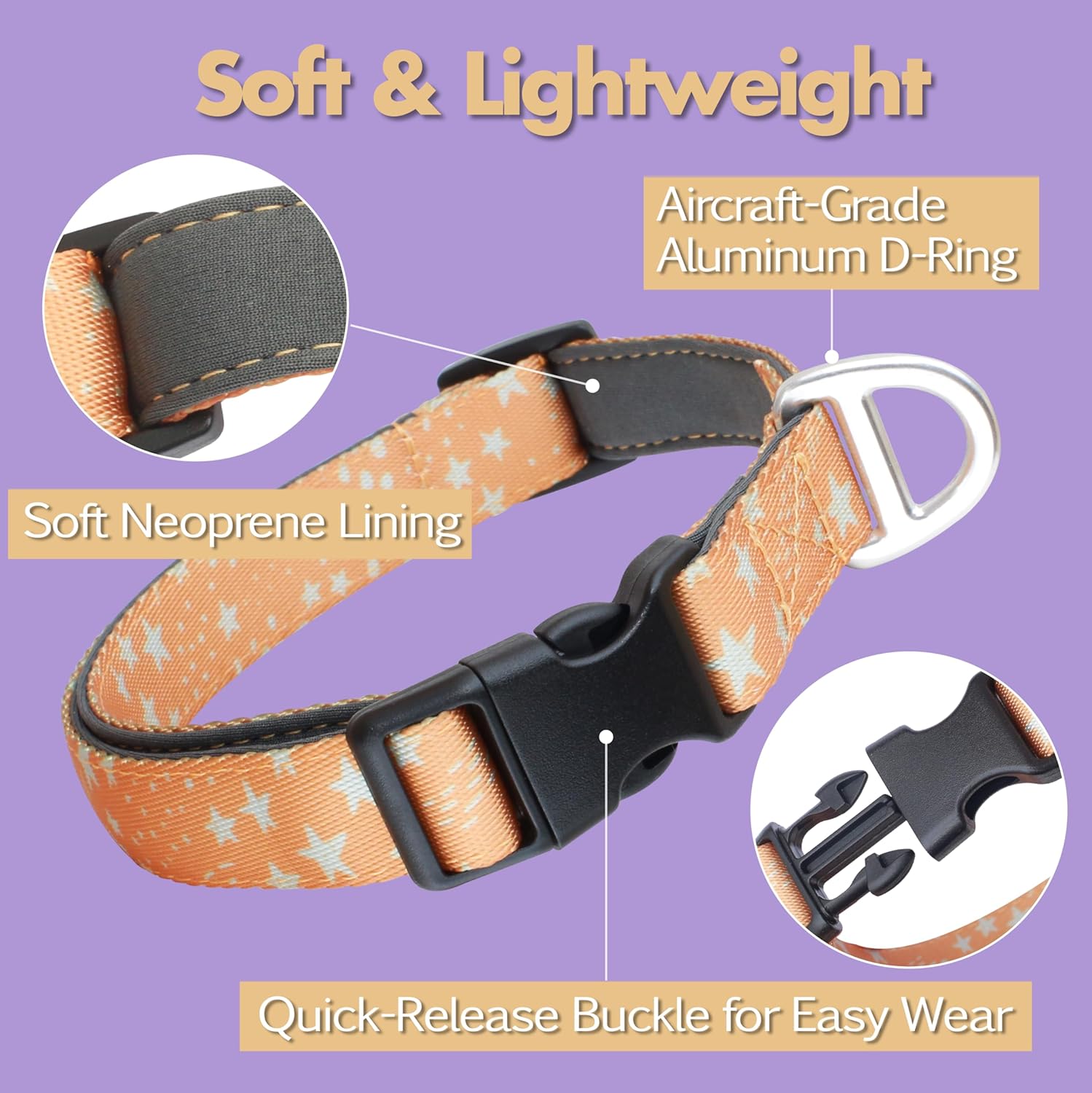 Fall Dog Collar, Cute Star Pattern Brown Collars for Girl & Boy, Reflective,Soft Padded Neoprene,Fully Adjustable,Durable & Lightweight Small Dog Collar, (Star, S)