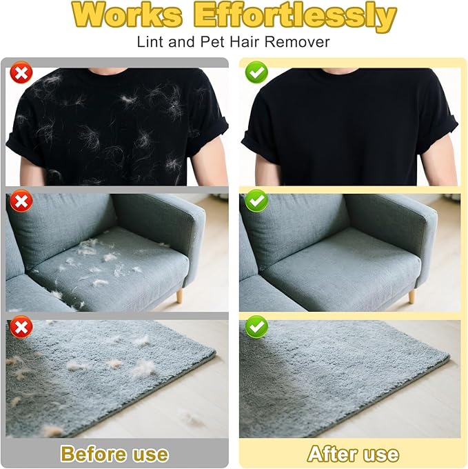 - ๐๐๐๐๐๐ญ๐ข๐ฏ๐ ๐๐ฅ๐๐๐ง๐ข๐ง๐ ๏ผThis pet hair removal tool features advanced electrostatic technology that firmly captures all types of pet hair. Whether it's fine, soft fur from short-haired cats or stubborn shedding from Golden Retrievers, simply glide the pet hair remover as you would during regular wiping, and most of the hair will be effortlessly removed.