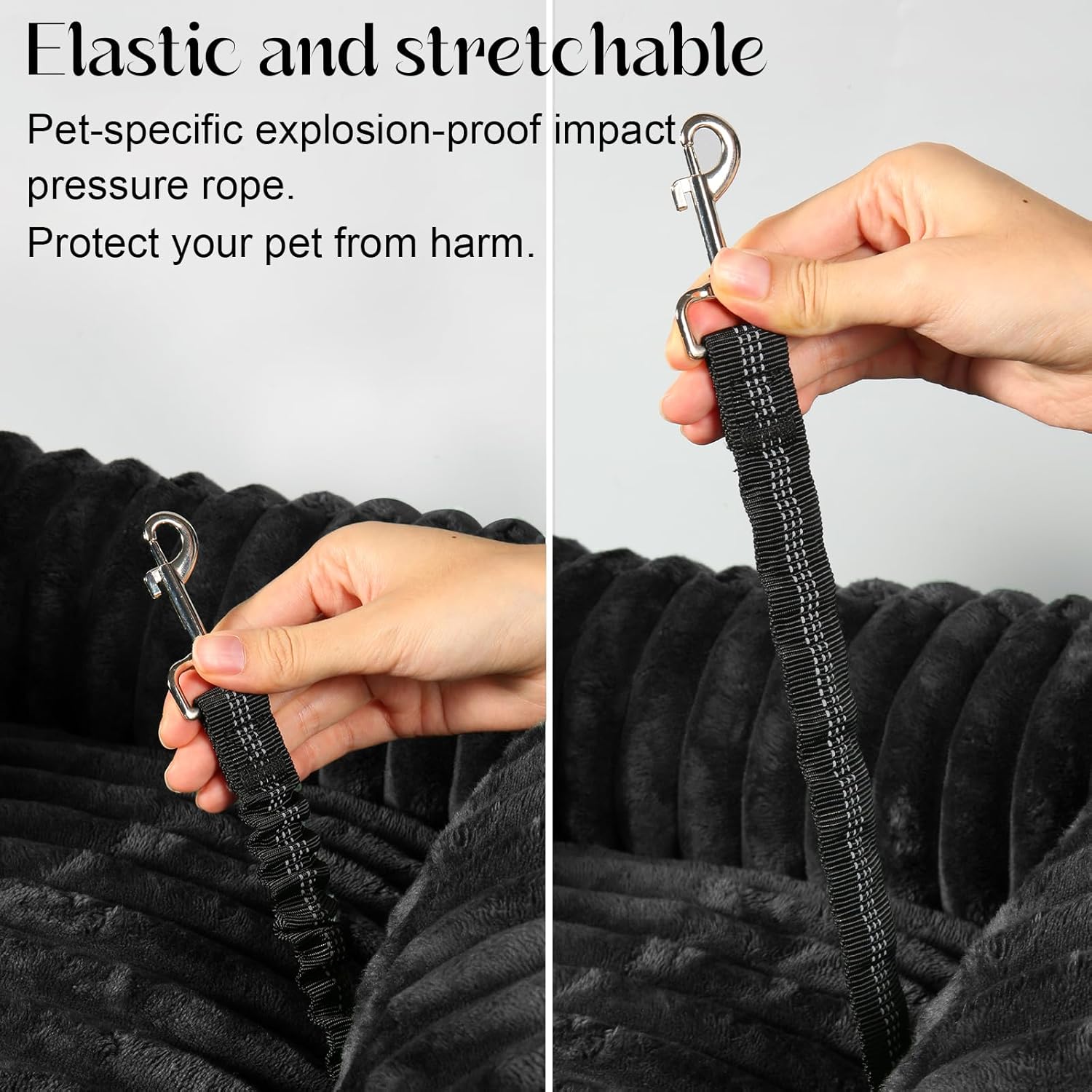Dog Car Booster Seat, for Small Dogs Under 30 lbs, Detachable Washable Travel Bed with Storage Pockets and Safety Belt (Black, Medium)