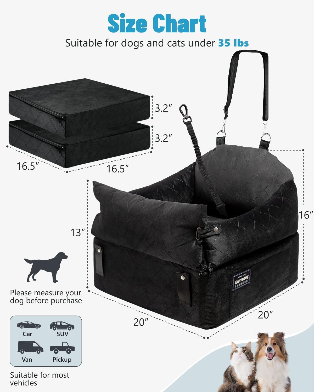 EASTBLUE Dog Car Seat for Small Medium Dogs Up to 35 lbs, Memory Foam Dog Booster Car Seat with Seatbelt, Detachable Washable Pet Carseat for Puppy & Cat, Dogs Travel Bed for Cars (Black)