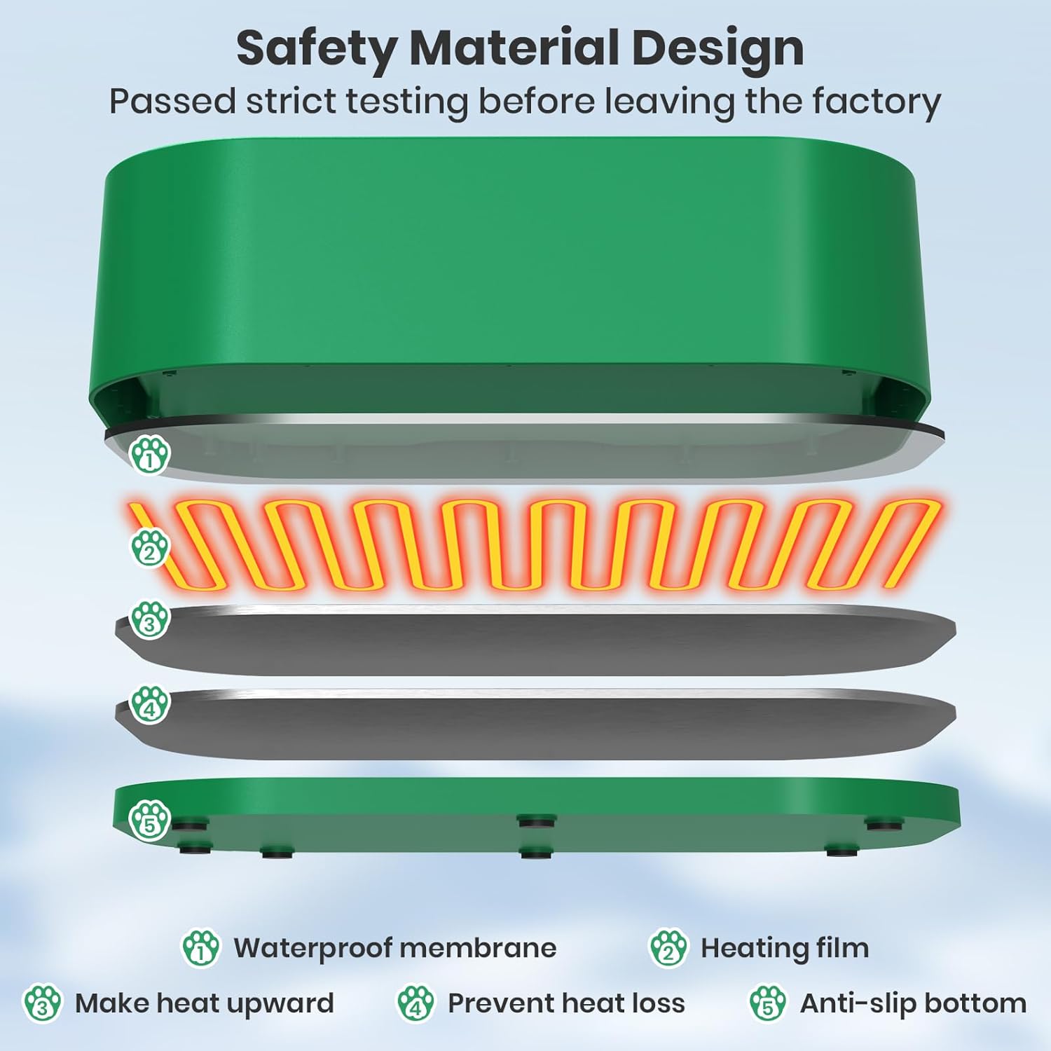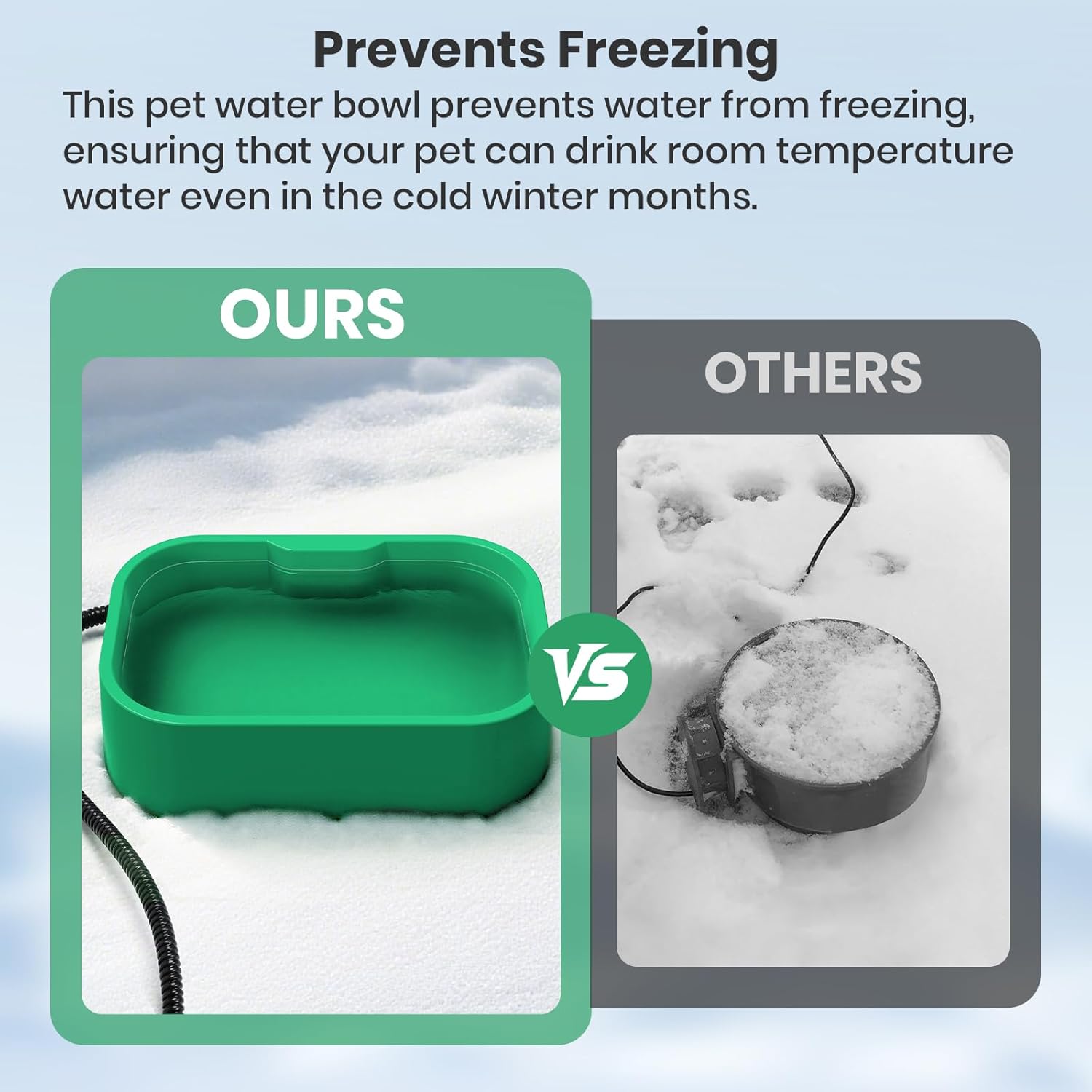 - 【Fast Heating and Avoiding Freezing】Its energy-efficient 48-watt heating element can heating water rapidly and prevents water from freezing in cold weather and operates all night with minimal power consumption, it can also keeps water between 77-95℉so your pets will always have access to warm drinking water, even in below-freezing conditions.