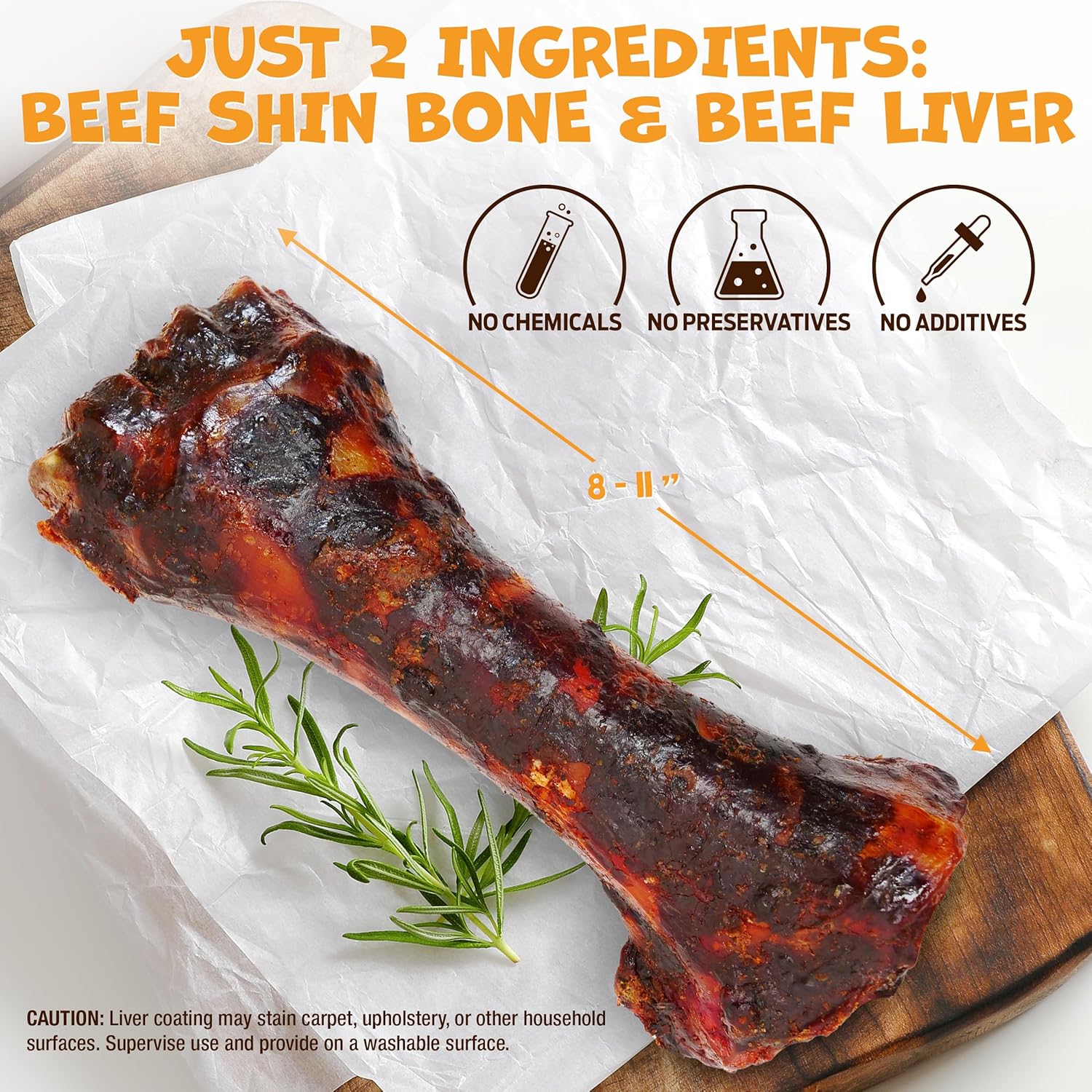 Beef Shin Bones for Dogs - Liver Coated Long Lasting Dog Chews for Aggressive Chewers - Rawhide-Free Big Bones for Large Dogs - Healthy Large Dog Bone (2 Pack)