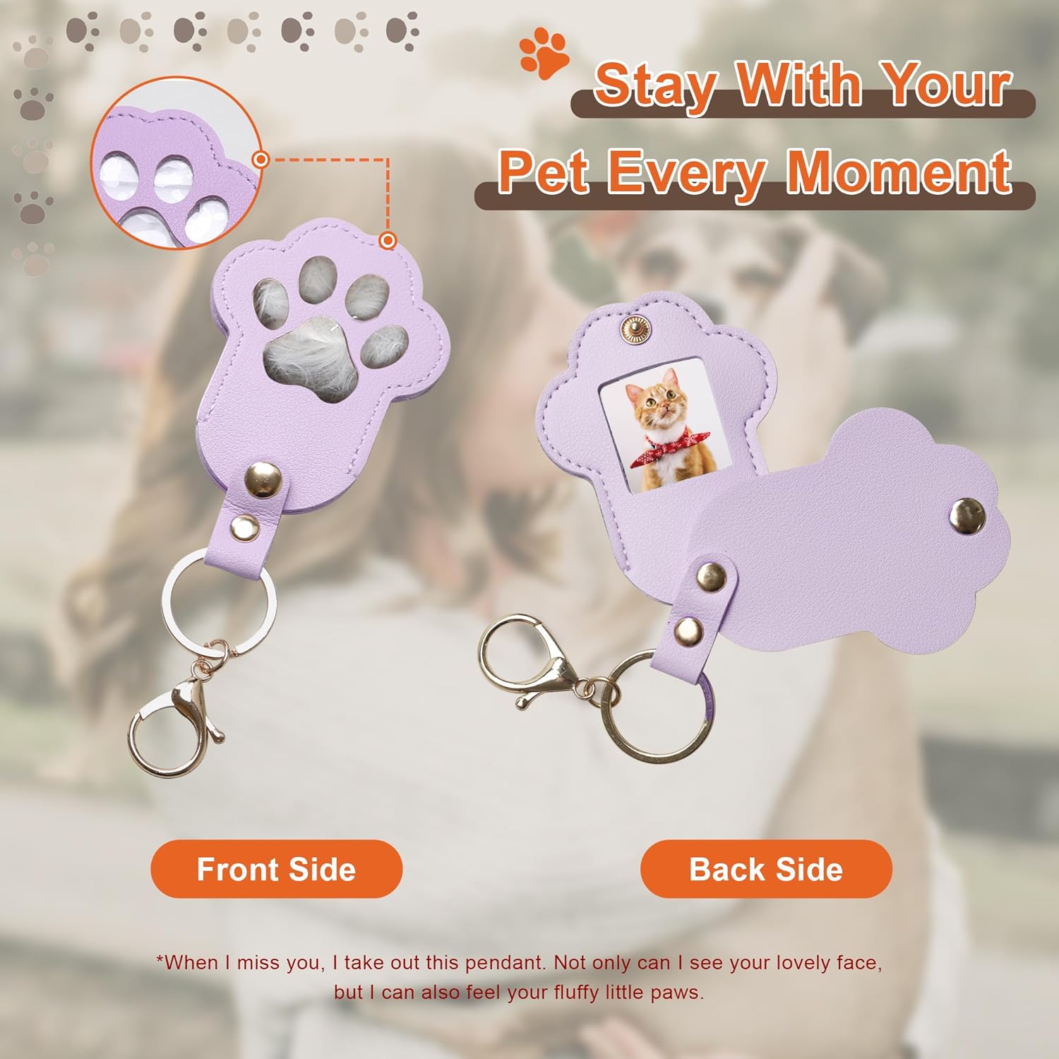 Pet Memorial Keychain Dog Paw Keepsake Photo Holder Heartfelt Memorial Gift for Loss of Dog and Cat Holds Fur and Pictures Keychain or Bag Charm for Bereaved Pet Owners (3Pack Purple)