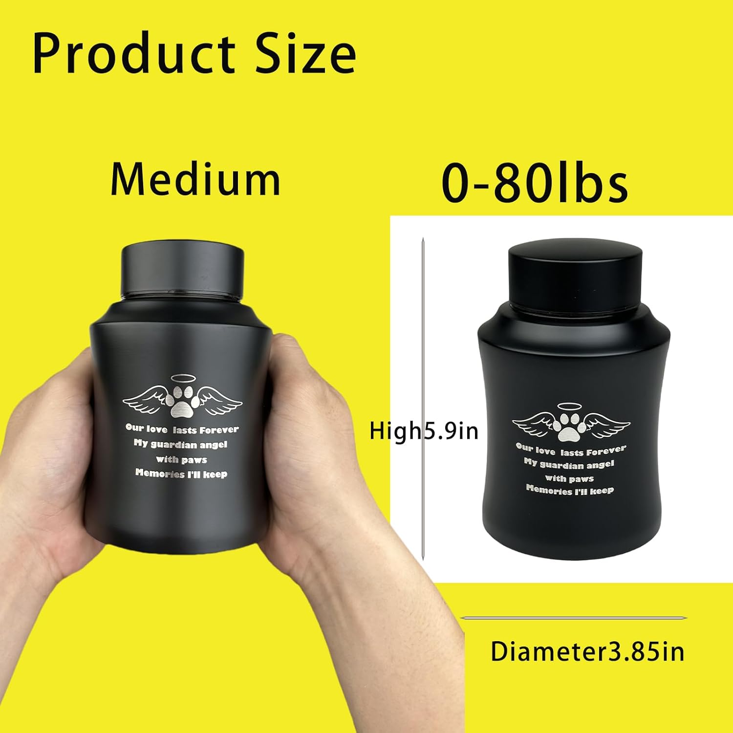 - Medium Size Capacity: Measuring 3.95" x 3.95" x 5.9", this urn holds the remains of pets weighing up to 80 lbs, suitable for medium to large dogs, cats, or multiple small pets