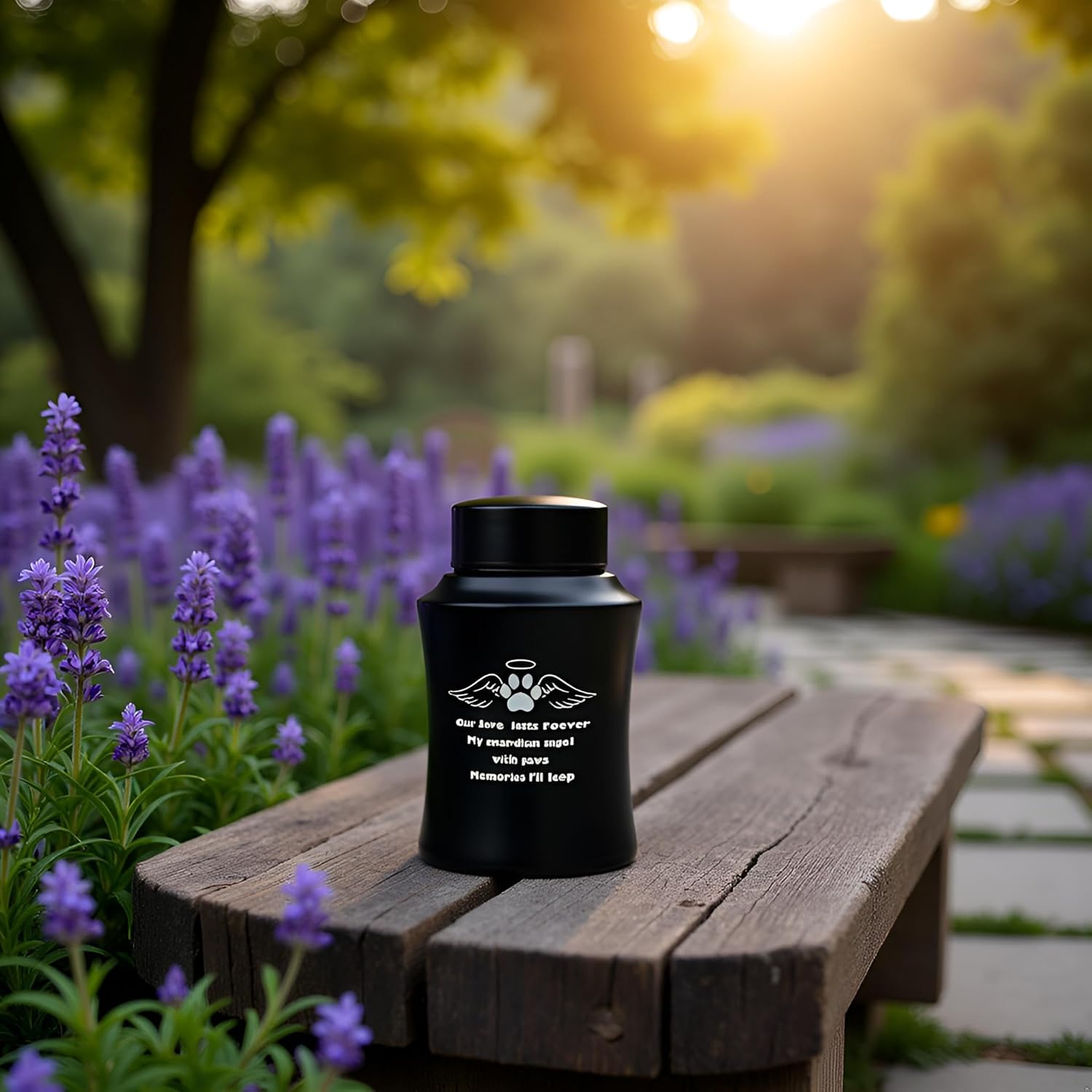 - Elegant Black Finish: Sleek matte black design with engraved paw print and angel wings creates a timeless and dignified tribute to your beloved pet