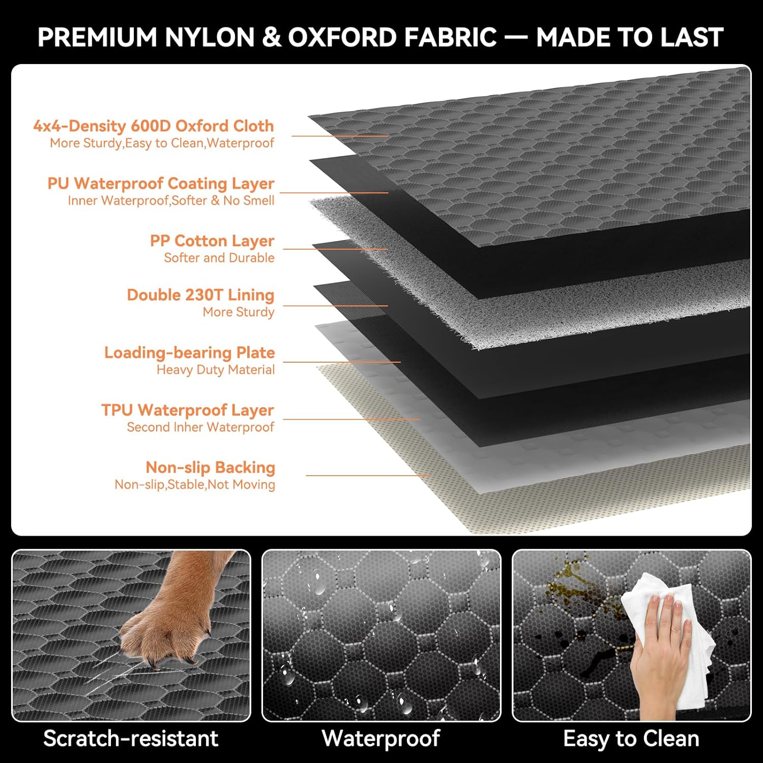 - Waterproof, Non-Slip & Easy Care: Made with 7 durable layers, including waterproof PU and TPU coatings plus high-density fiberboard, this dog back seat cover resists tearing, repels spills, and stays firmly in place with non-slip rubber backing. Installing or removing the dog back seat cover takes just a few minutes. Cleaning is simple—just wipe with a damp cloth, vacuum, or rinse for a fresh reset.
