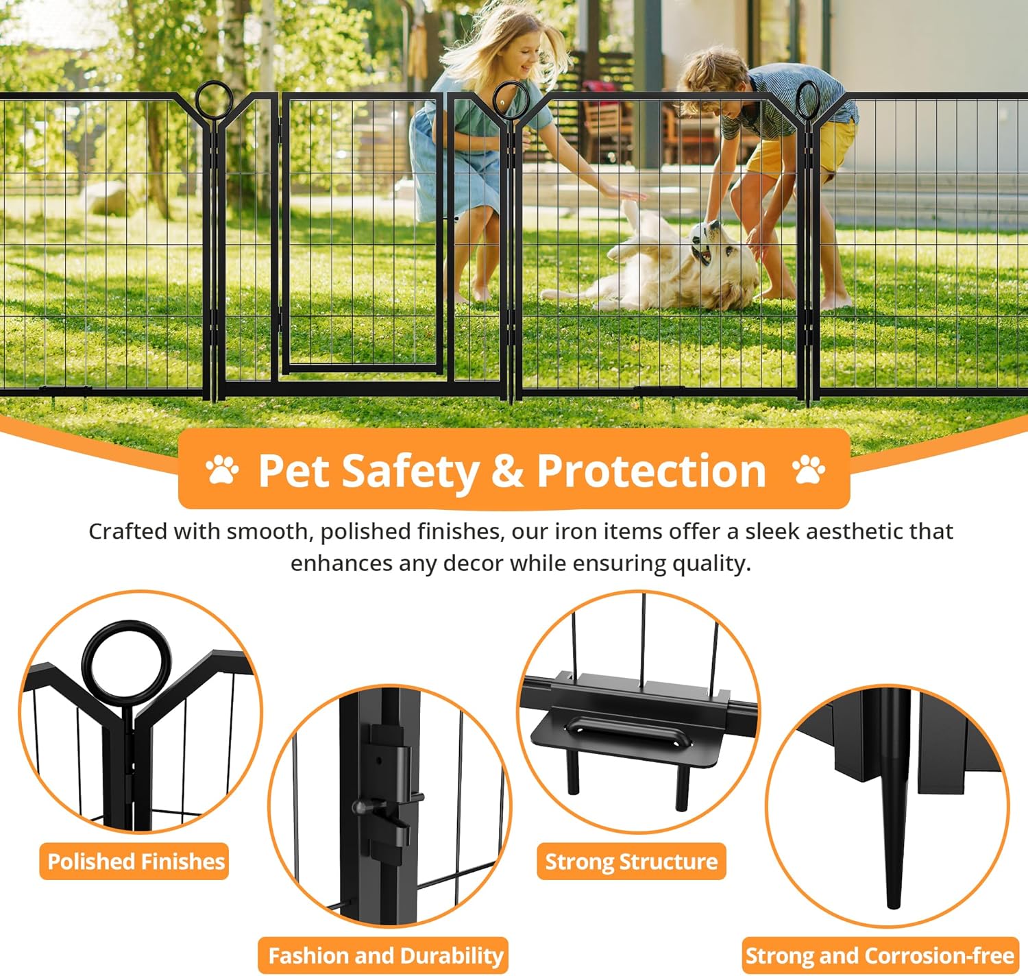 - Packing list: 16 connecting plates with thumbtacks for attaching the ends together; latch with locking sliding bolt; 16 ground anchors for safe placement outside; made of durable steel wire with rust-proof treatment, it can easily face rainy and snowy outdoor weather