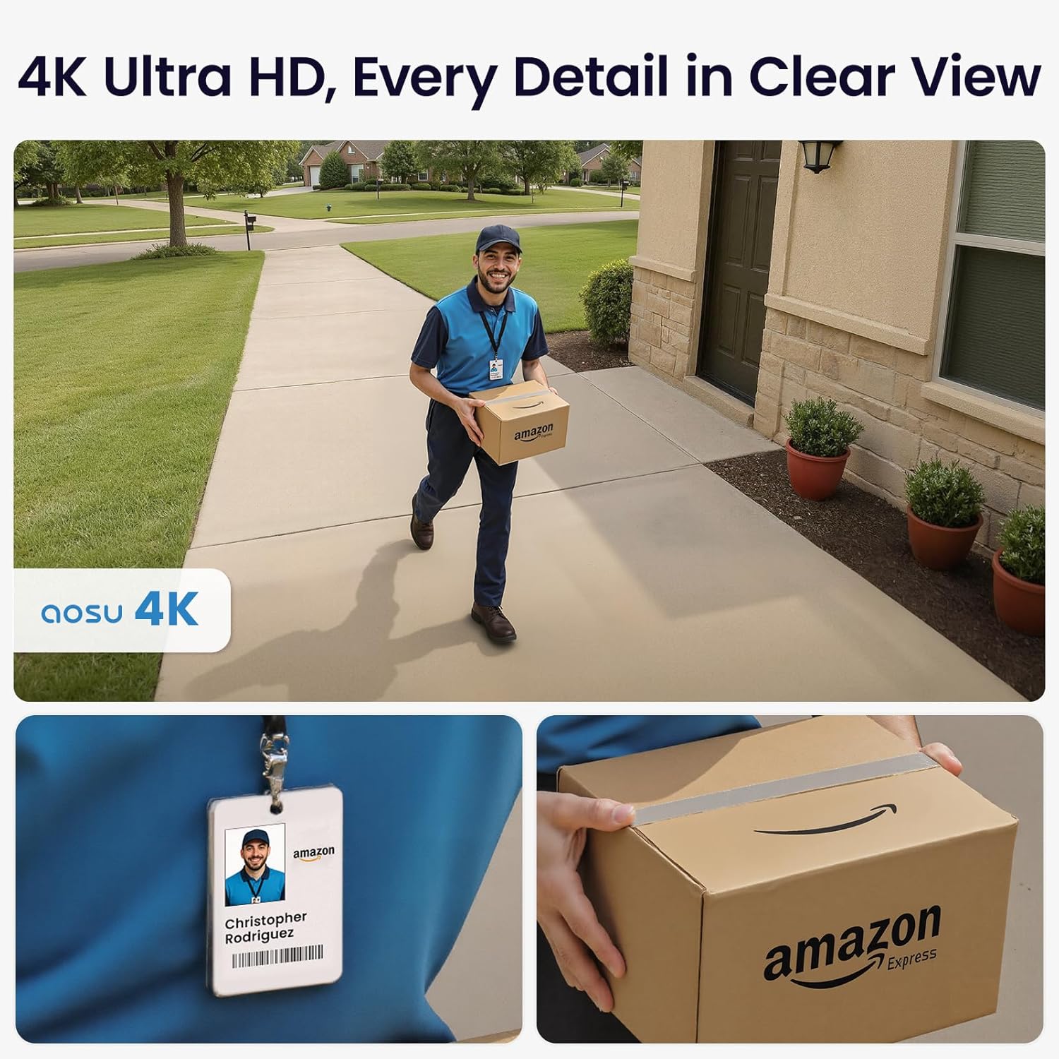 - aosu TrueSight — When Your Camera Truly Understands: TrueSight AI combines face recognition and behavior analysis to detect strangers—even in disguise—and recognize both familiar and unfamiliar vehicles. Suspicious behavior triggers instant alerts, while footage is AI-organized for quick, one-command searches—keeping you proactive and your home safer.