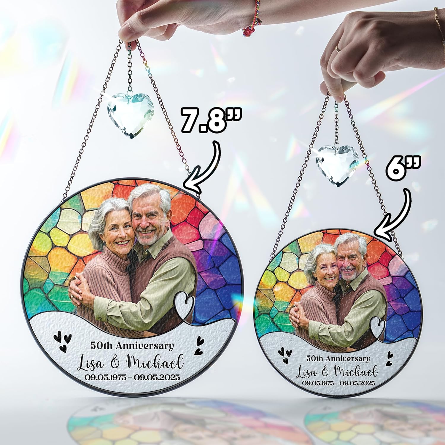 - Acrylic Ornament Included: Comes with a beautifully crafted acrylic ornament, personalized with the same names and anniversary date as your custom suncatcher — creating a coordinated keepsake set that sparkles with love and meaning.