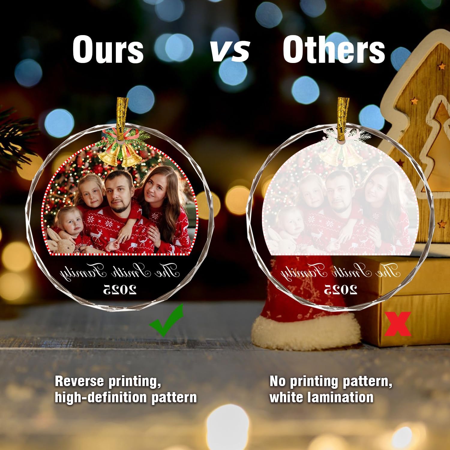 - 🎄Personalized Crystal Photo Ornaments --- Let your special memories live forever! You can add photo of yourself with your family, friends, or anyone close to you, along with any text you desire, to the crystal pendant, and we will customize it specifically for you.