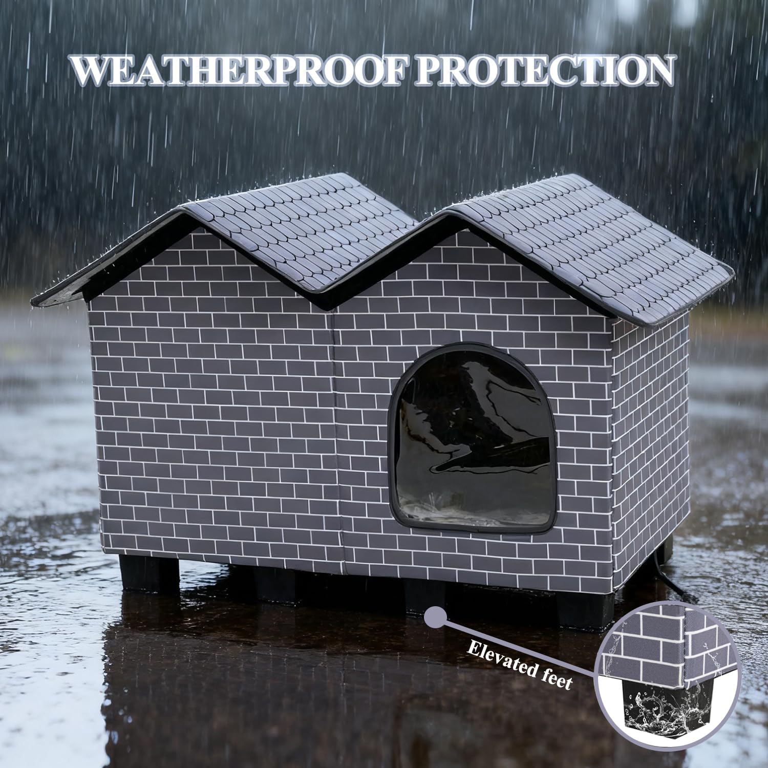 - ELEVATED & STABLE DESIGN: The raised base prevents ground coldness and dampness from seeping in, enhances airflow, and deters pests, adding extra comfort and safety to this outdoor cat house.