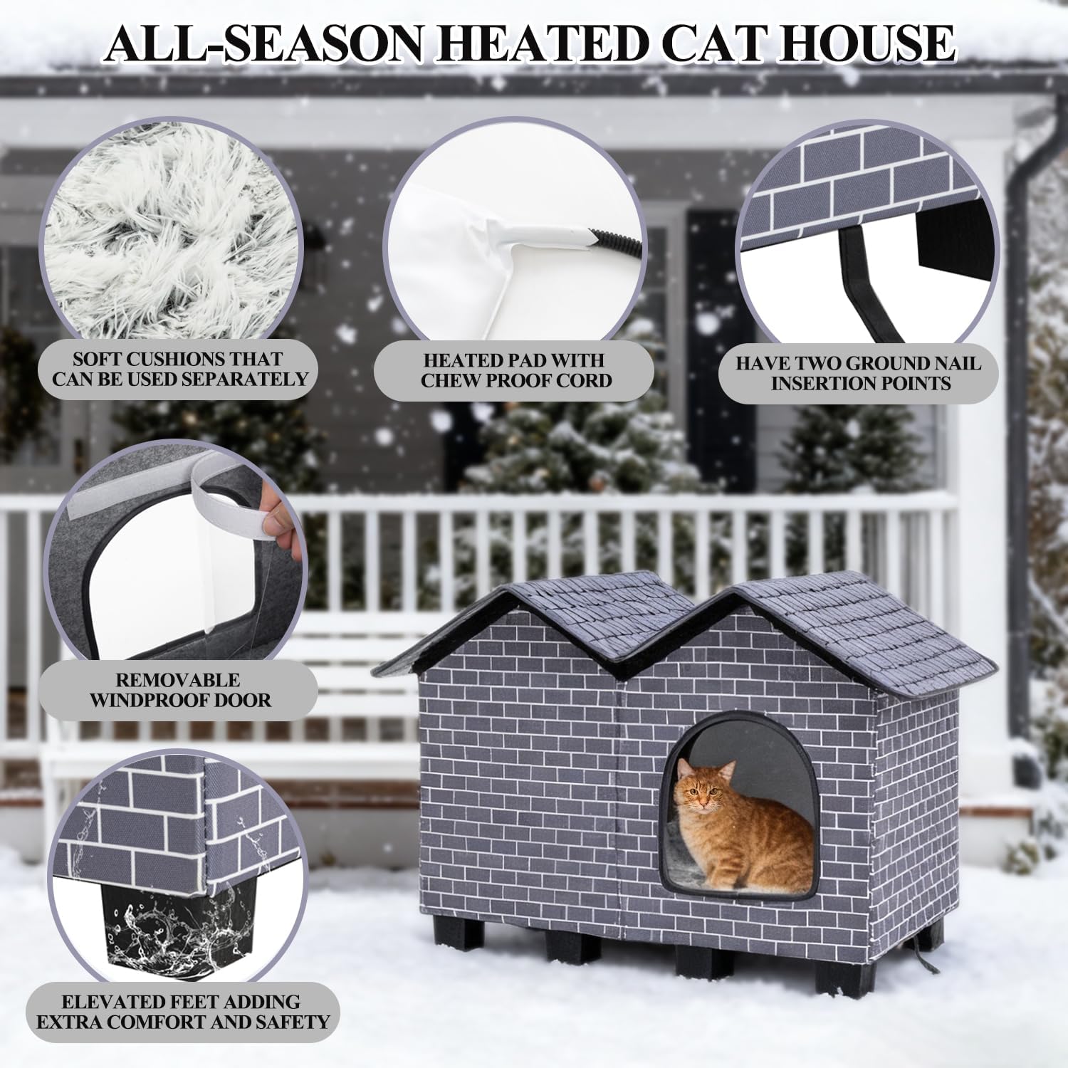 - All-SEASON HEATED CAT HOUSE: Equipped with a energy-efficient heated pad that provides consistent warmth during chilly winters, making this heated cat house for outside the perfect solution to keep your furry friends cozy and safe in freezing temperatures.