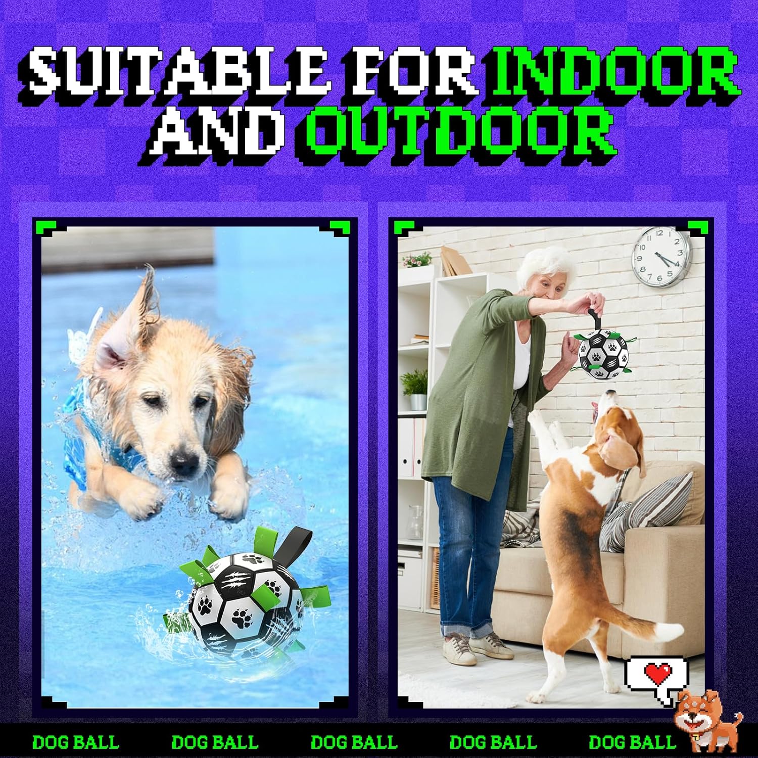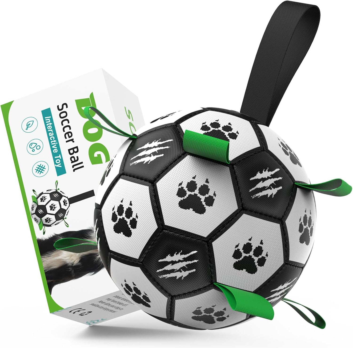 - Dog Soccer Ball with Straps: The design of nylon straps gives dog ball a new definition. This dog soccer ball has 8 short straps and 1 long strap. The strap allows dogs to pick up and pick up better, perfect for tug of war, fetch, or other games that keep your dog physically active and mentally engaged