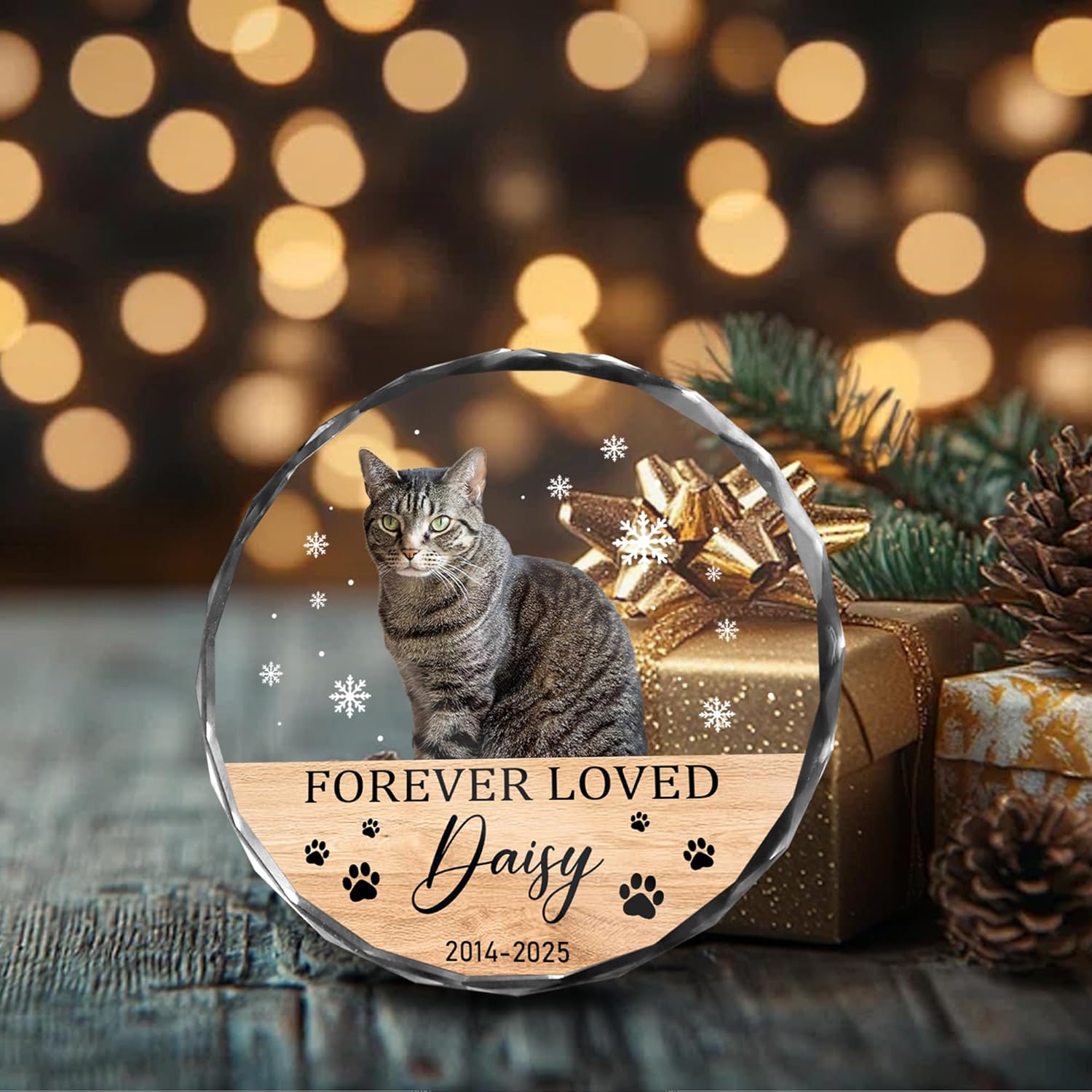 - Honor your beloved feline with our cat memorial ornament, designed to keep the memory of your cherished pet alive. Featuring a photo of your cat, their name, and life span, this ornament offers a heartfelt reminder they will always be loved. A meaningful way to cope with the loss of your furry friend during the holidays.