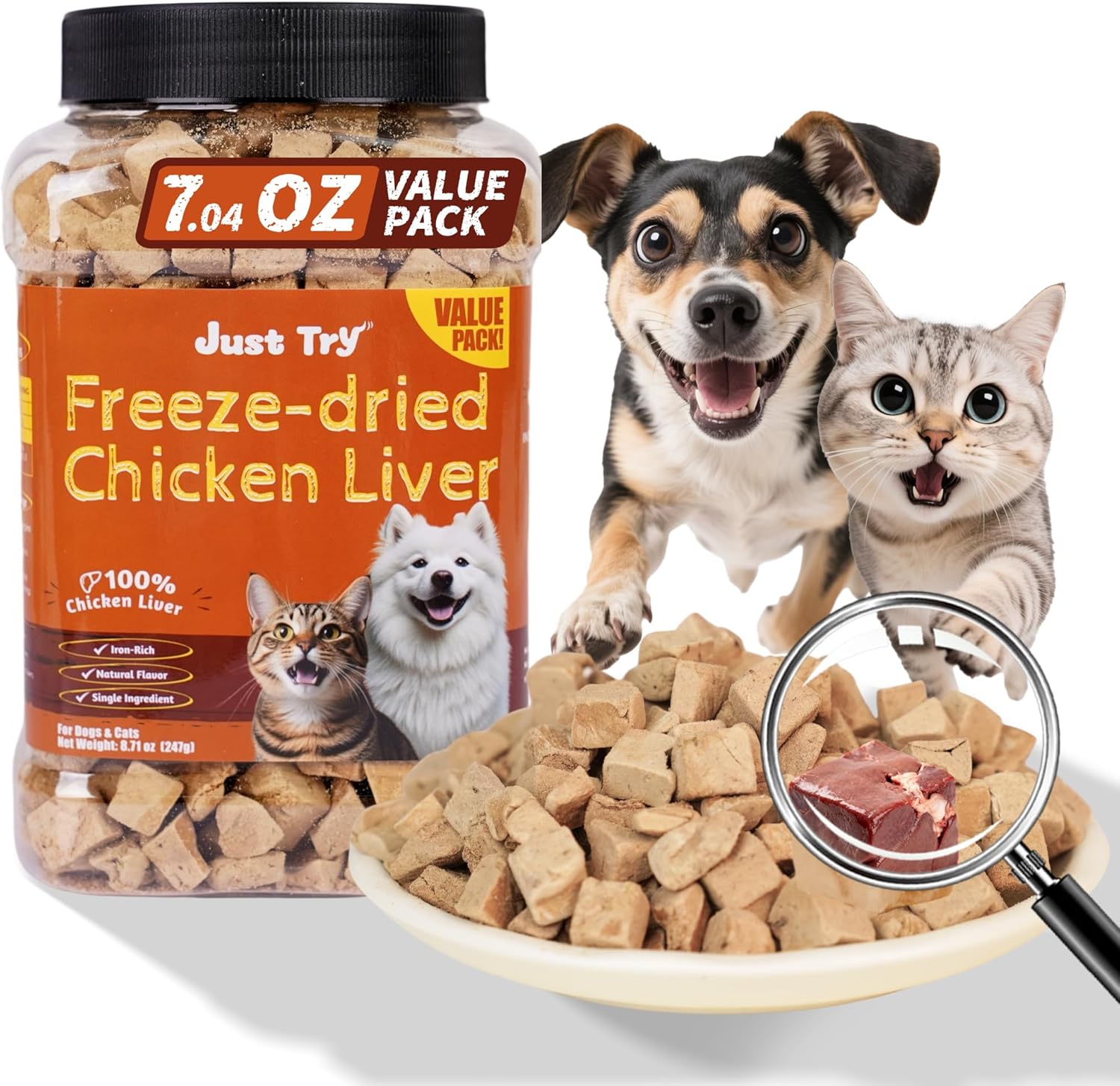Just Try 8.71 oz Freeze-Dried Chicken Liver Treats for Dogs - Natural, Protein-Packed Dog Training Snacks - Grain-Free, Iron & Vitamin A Rich